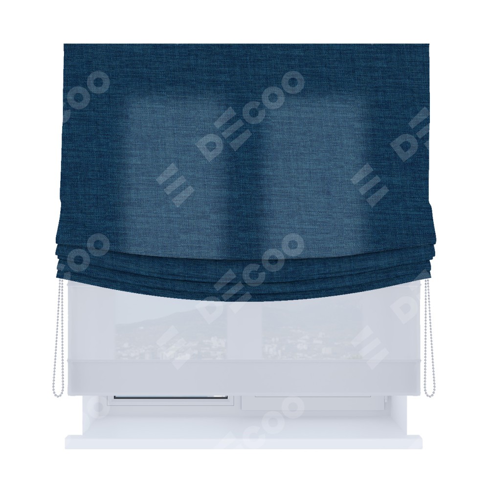 Двойная римская штора «День-ночь» от производителя Cortin предназначена для использования в проёмах. Эта штора уникальна тем, что состоит из двух полотен. На лицевой стороне находится лён синий (артикул: 104496), обеспечивающий эффективное затемнение. В комплект также входит вторая ткань — легкий белый тюль (артикул: V-01), который добавляет изящества и легкости оформлению окна. Кроме того, доступны и другие разновидности ткани тюль, выбор которых доступен по ссылке .