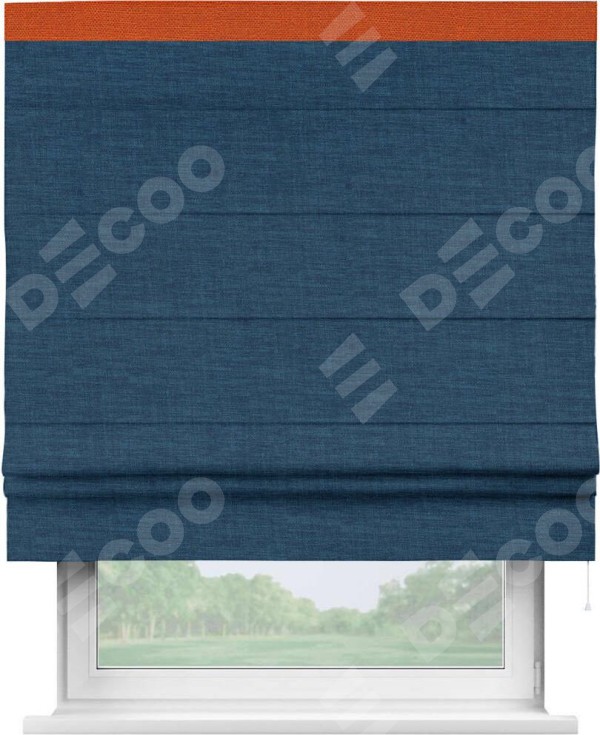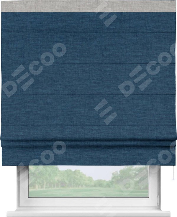 Римская штора «Кортин» для проёма, лён синий, с кантом Кинг