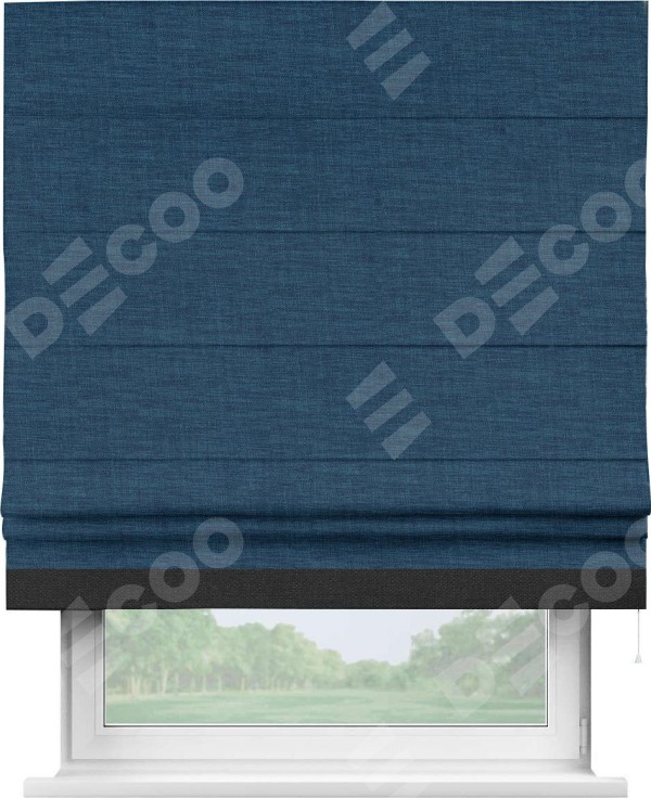 Римская штора «Кортин» для проёма, лён синий, с кантом Джестер