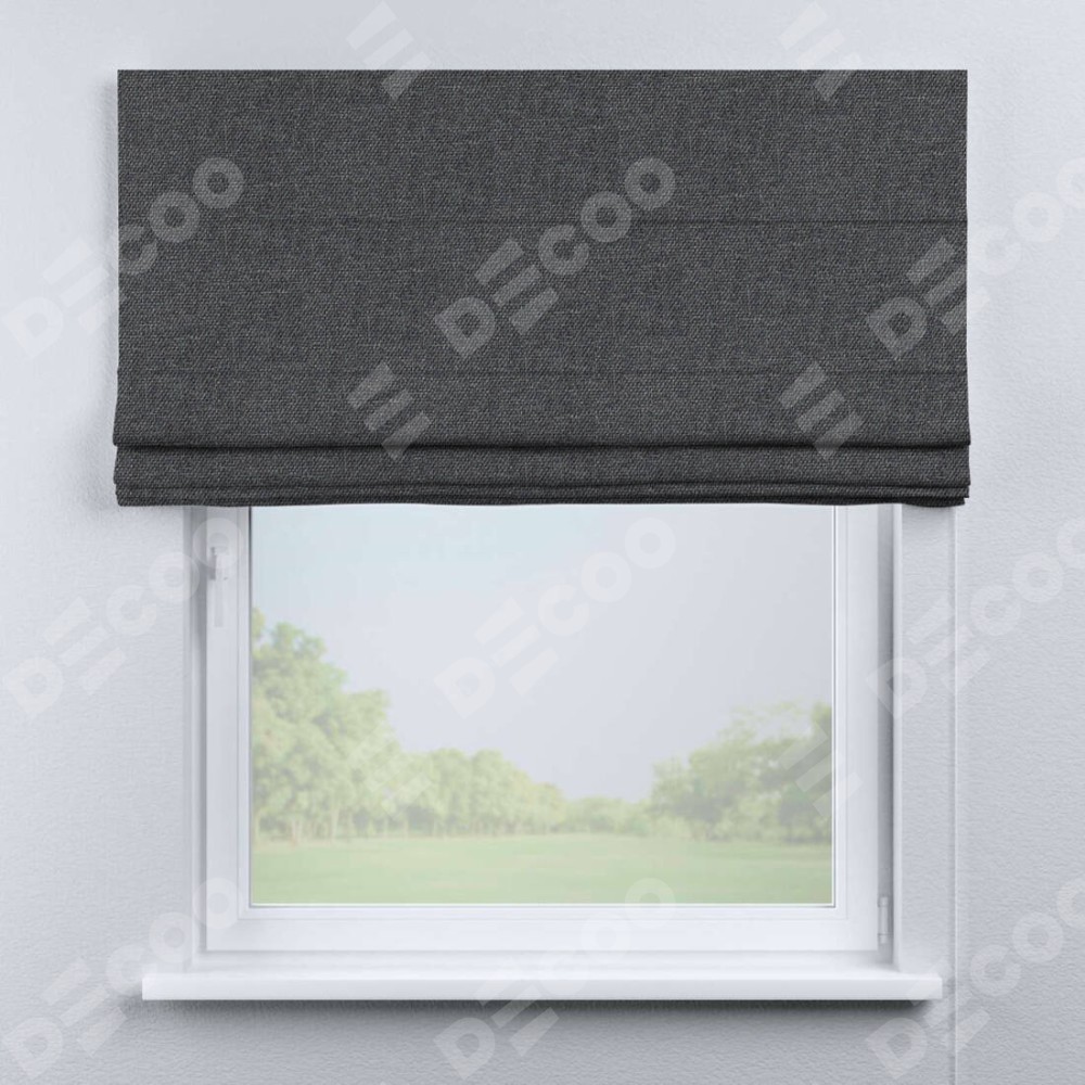Классическая римская штора производителя «Cortin», пошита из ткани лён димаут графит, артикул: 140644. Имеет универсальный механизм и подходит для монтажа: на потолок, на стену и в нишу.