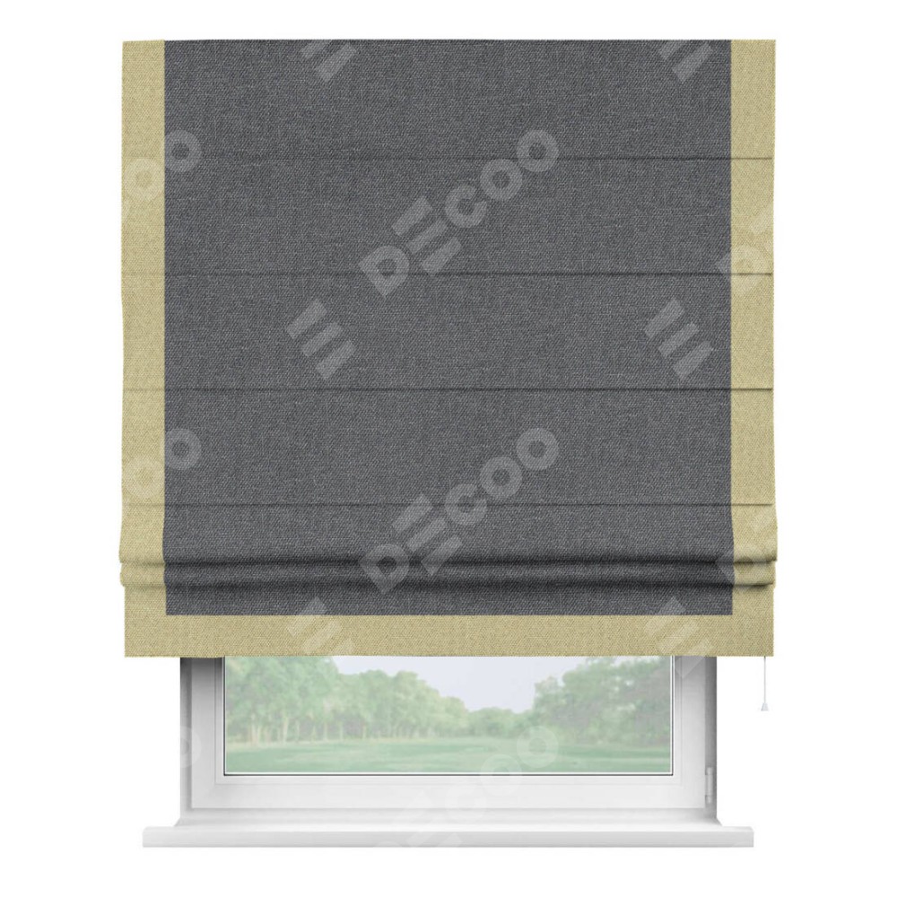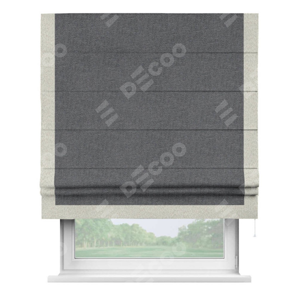 Римская штора «Кортин» для проёма, лён димаут графит с кантом Виктория