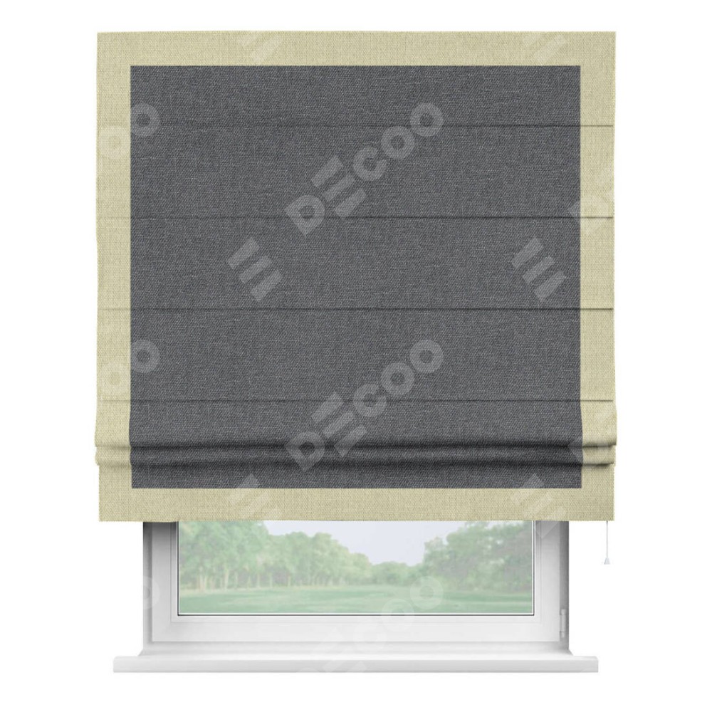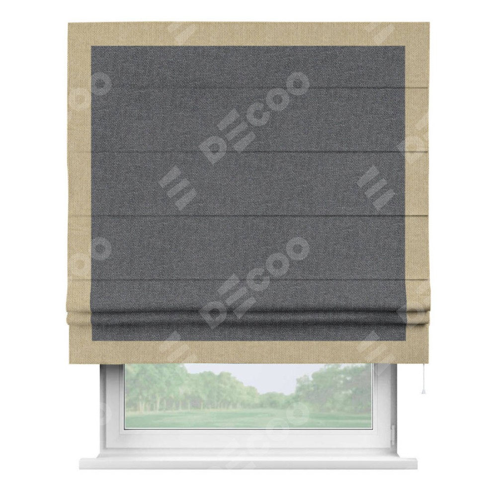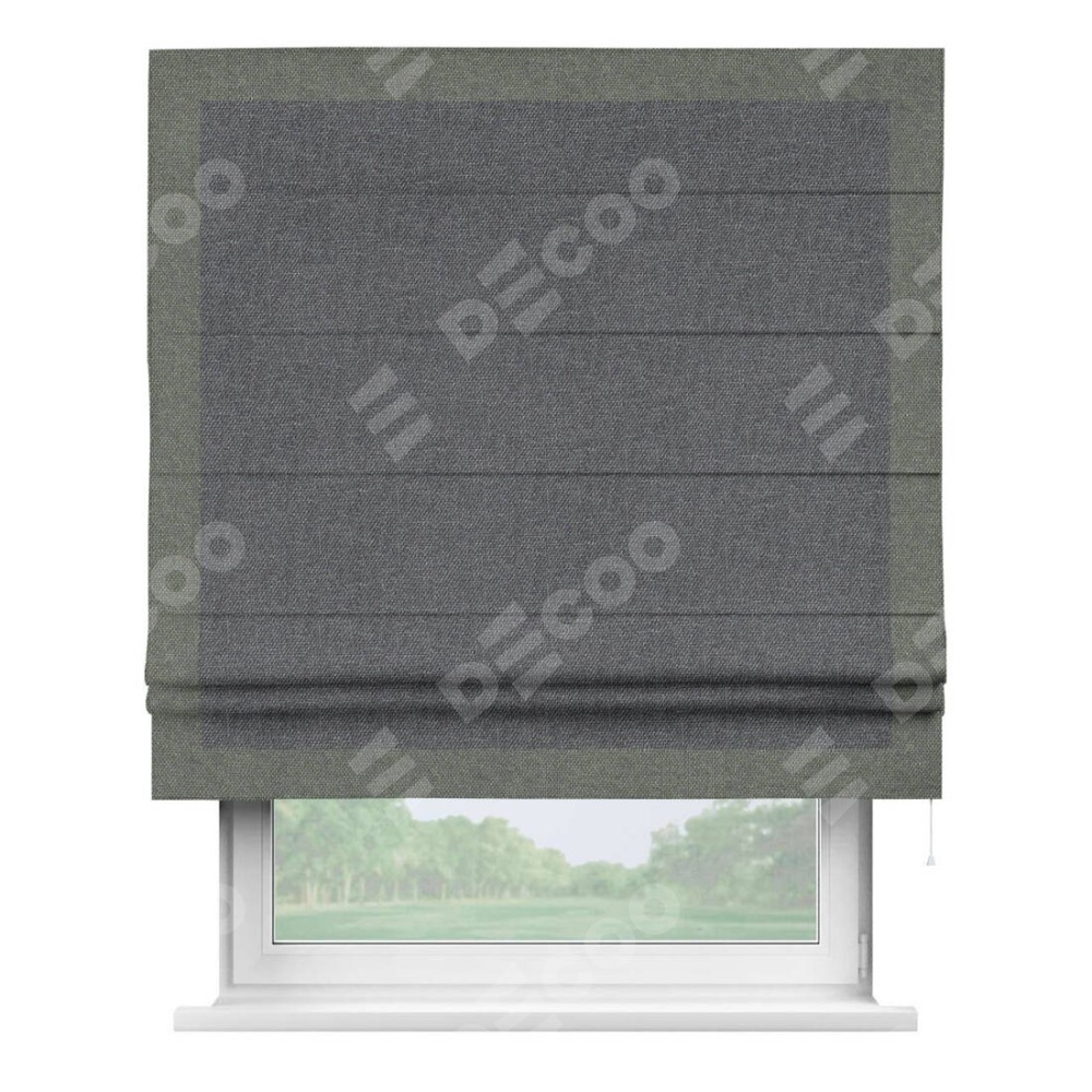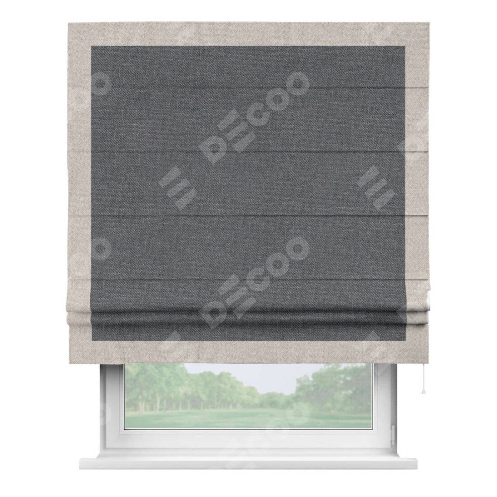 Римская штора «Кортин» для проёма, лён димаут графит с кантом Чесс