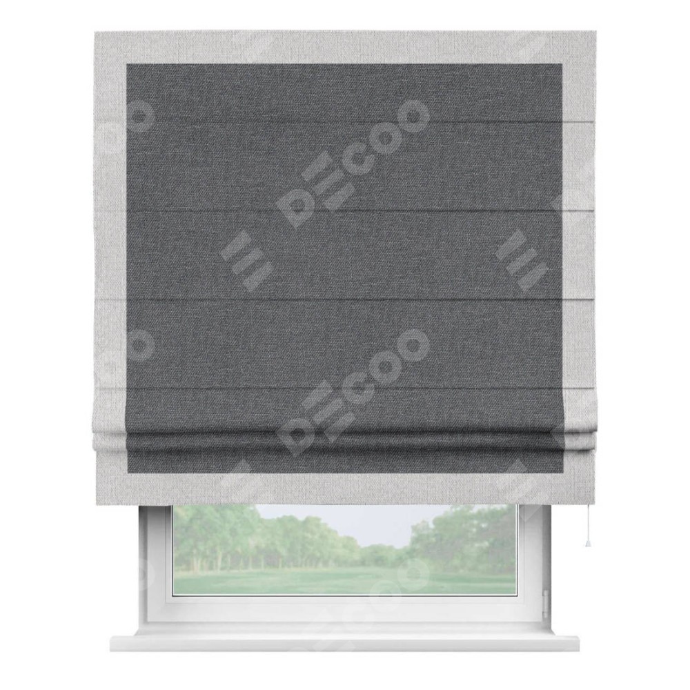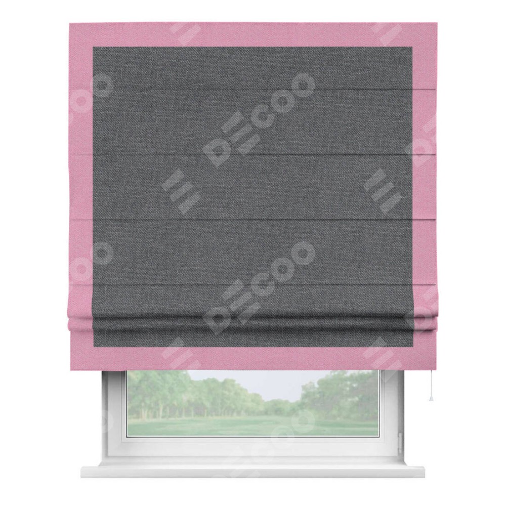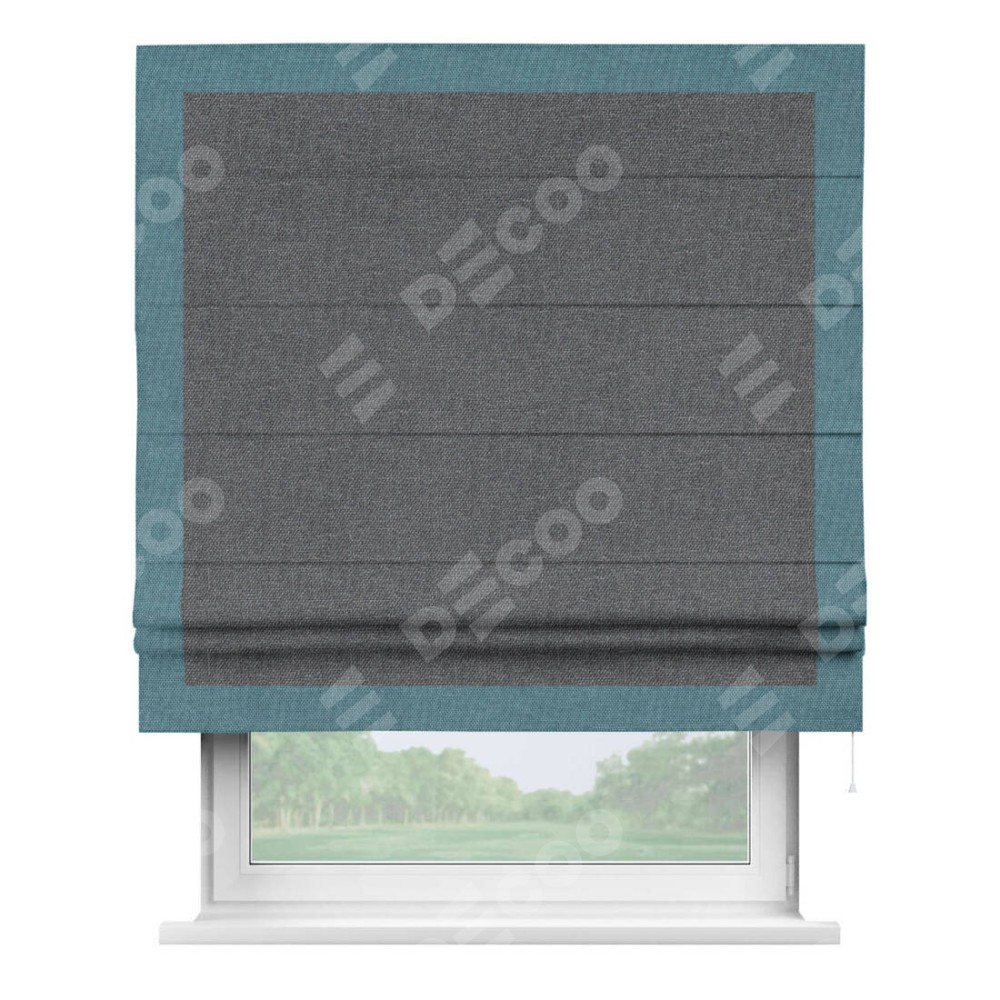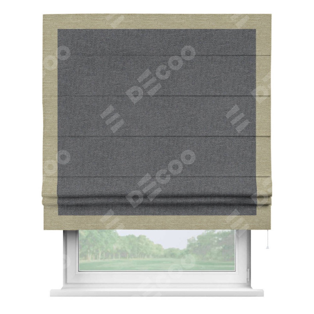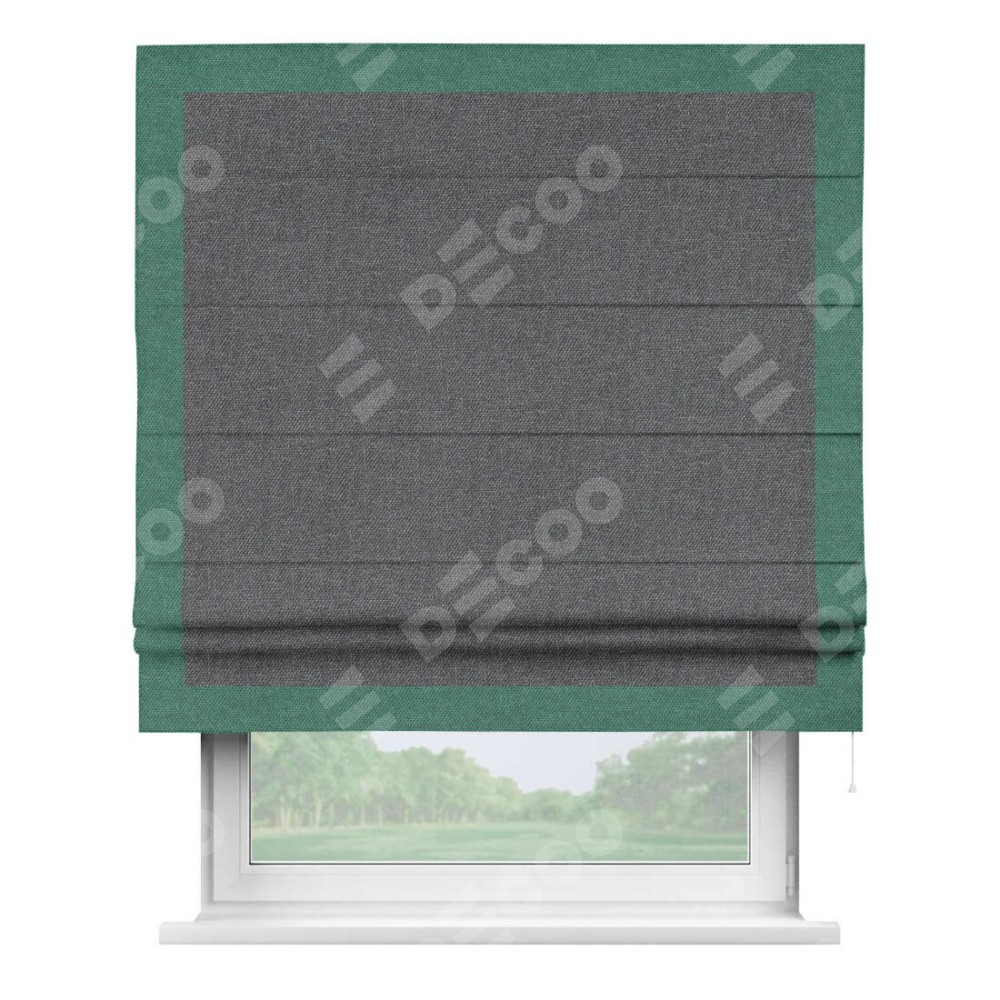 Римская штора «Кортин» для проёма, лён димаут графит с кантом Чесс