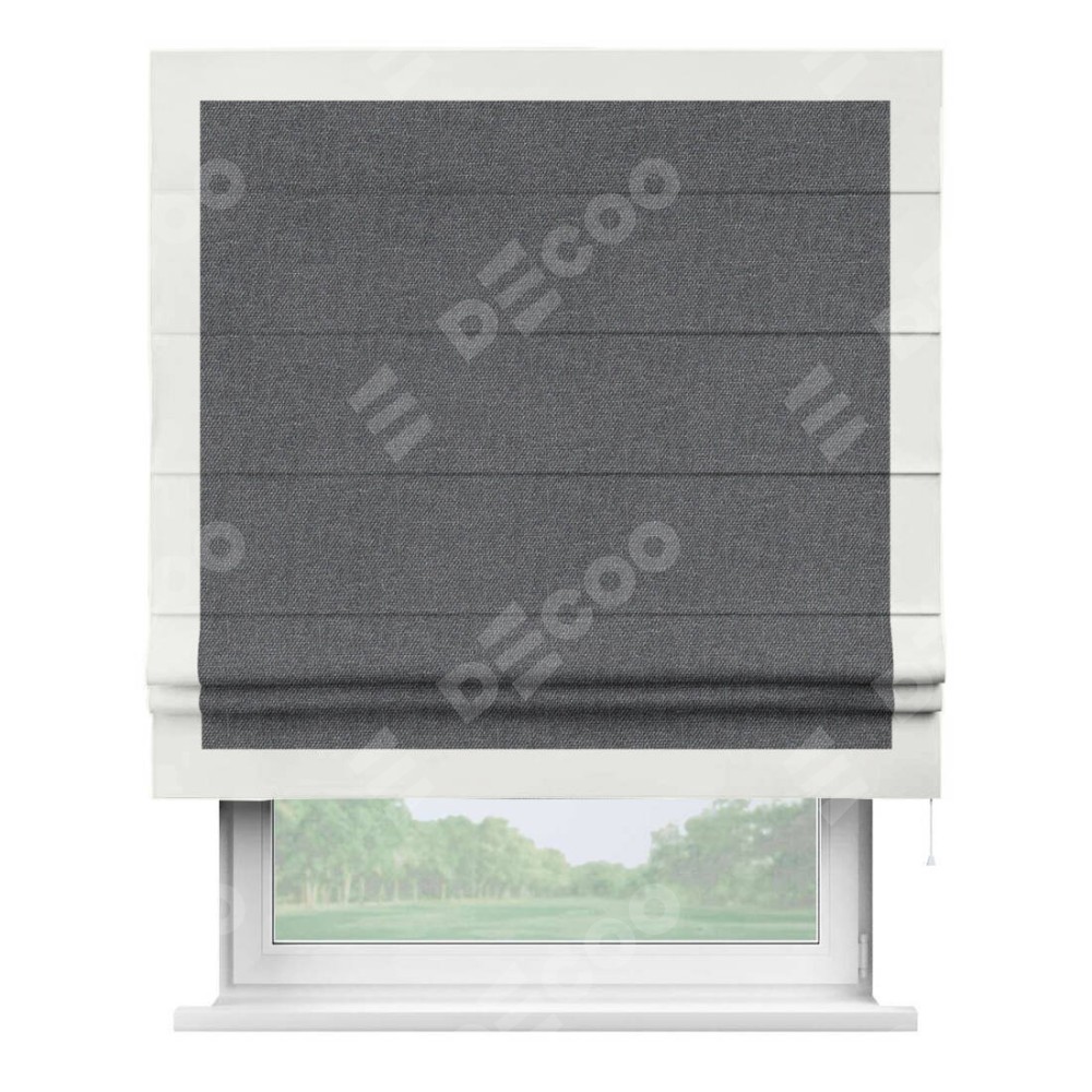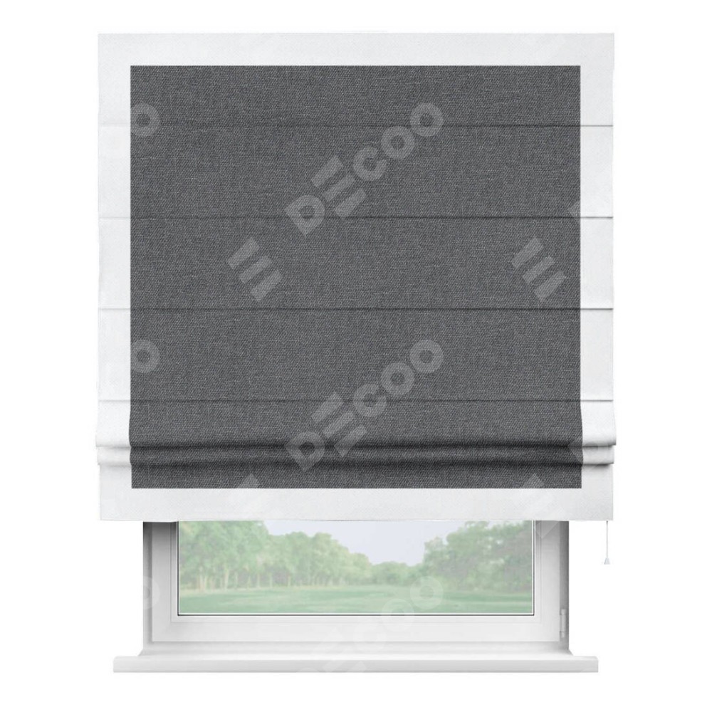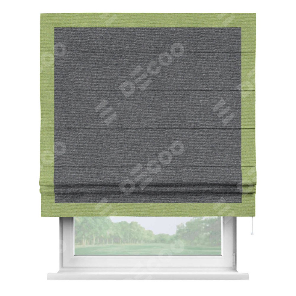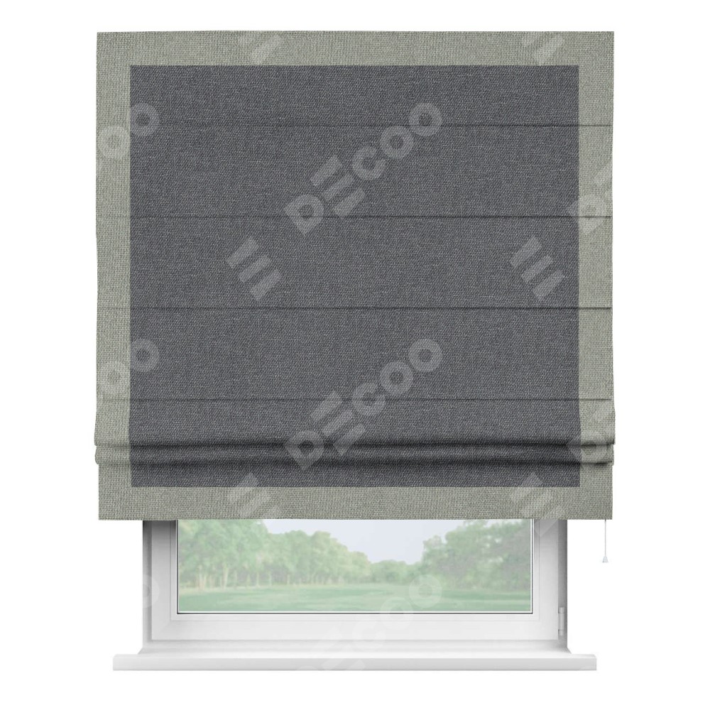 Римская штора «Кортин» для проёма, лён димаут графит с кантом Чесс