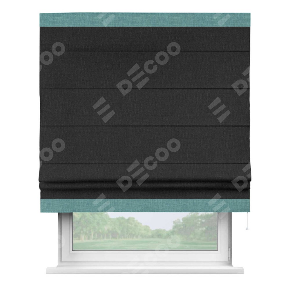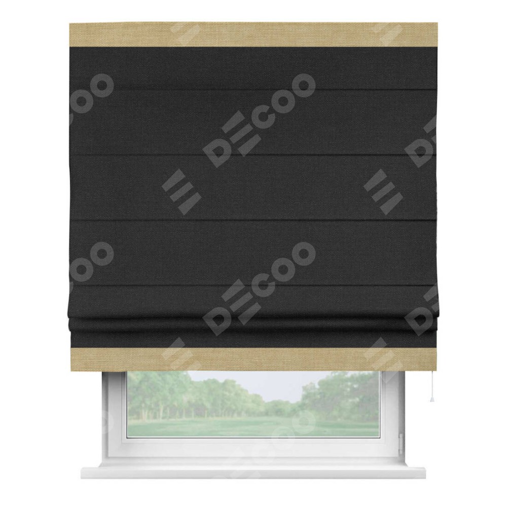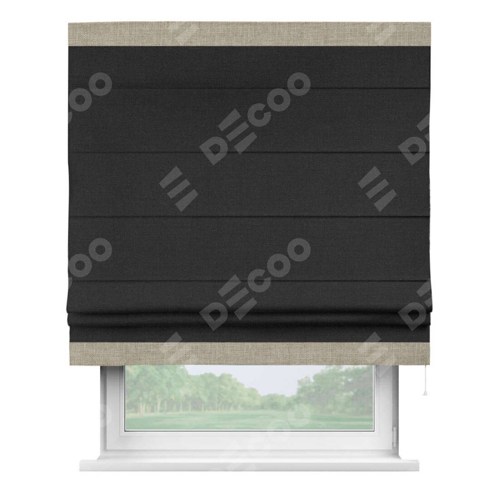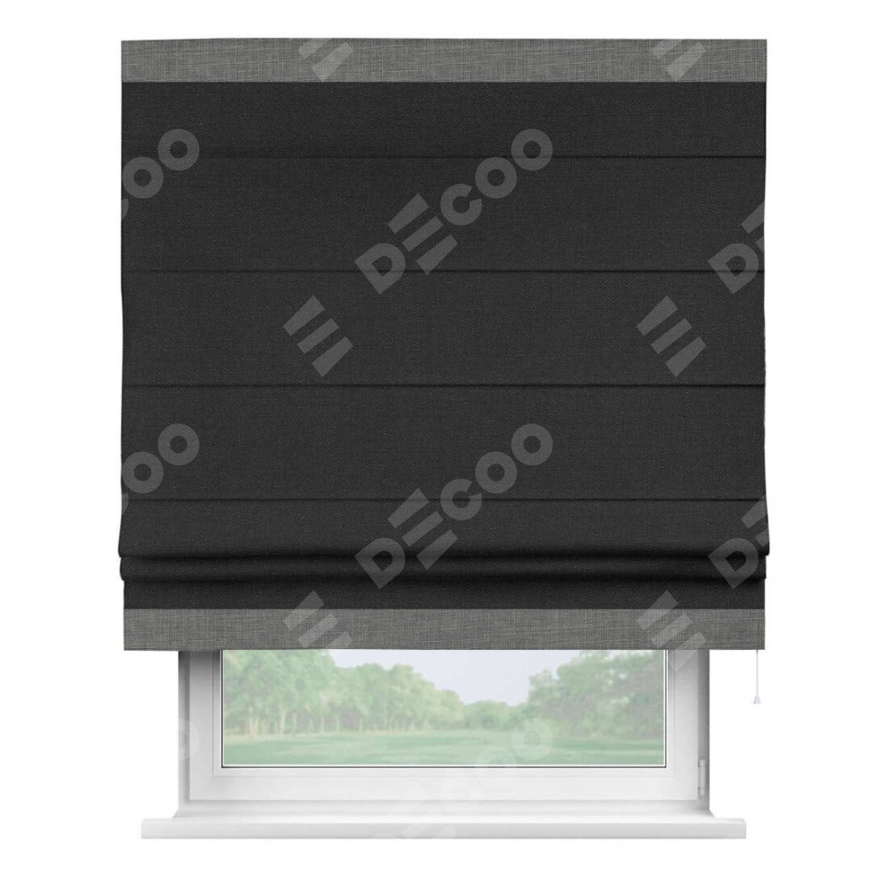 Римская штора «Кортин» для проёма, лён чёрный, с кантом Горизонт
