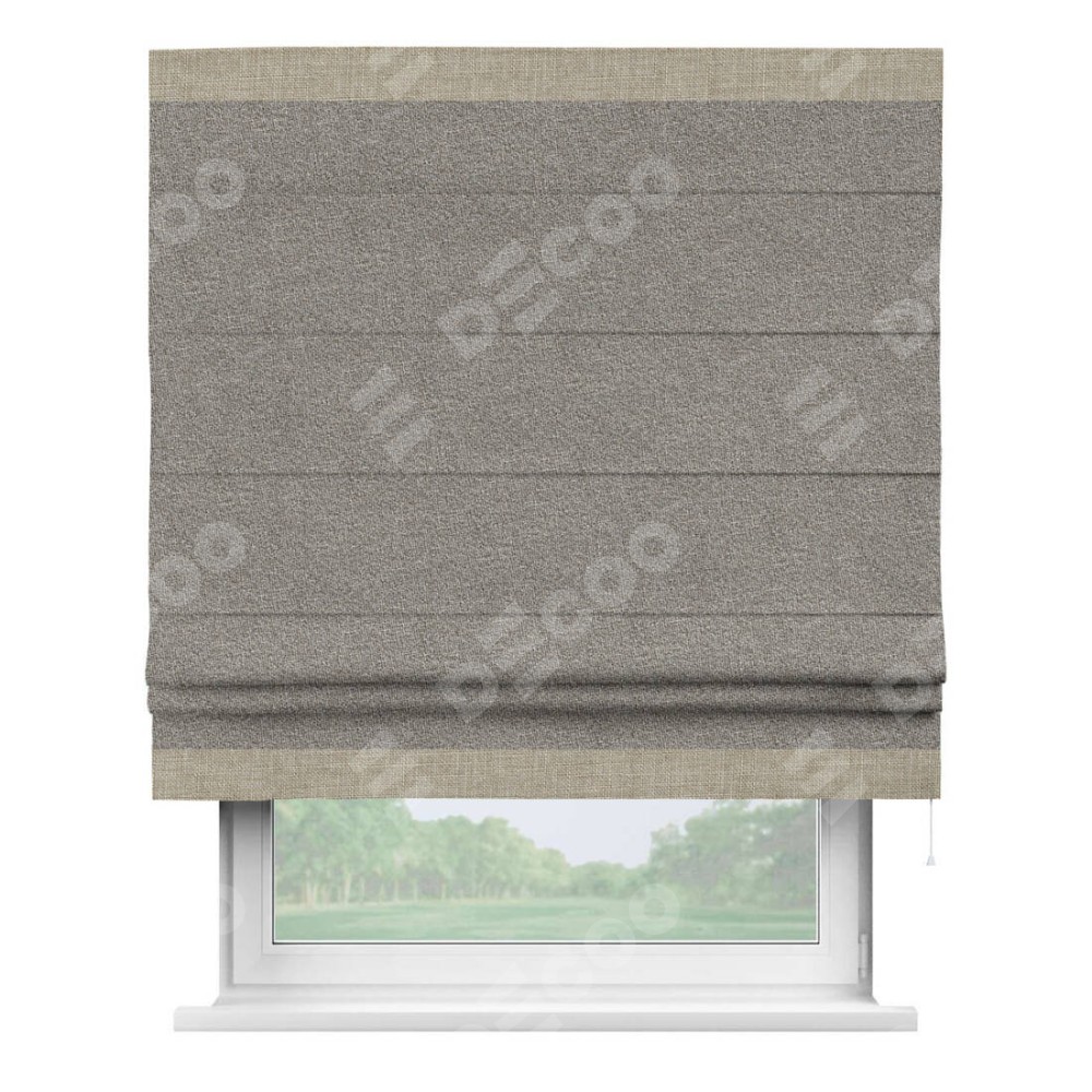 Римская штора «Кортин» для проёма, лён меланж натуральный, с кантом Горизонт