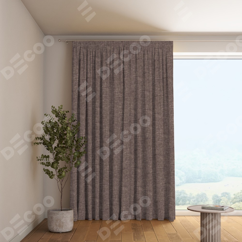 Готовые шторы от производителя «Cortin» представлены комплектом из двух одинаковых по размеру полотен, пошитых из ткани рогожка димаут коричневый, артикул ткани 80420. Такие шторы по сравнению с индивидуальным пошивом имеют ряд преимуществ: удобный размерный ряд под стандартные проёмы, стоимость и сроки (т.к. изделия всегда в наличии).