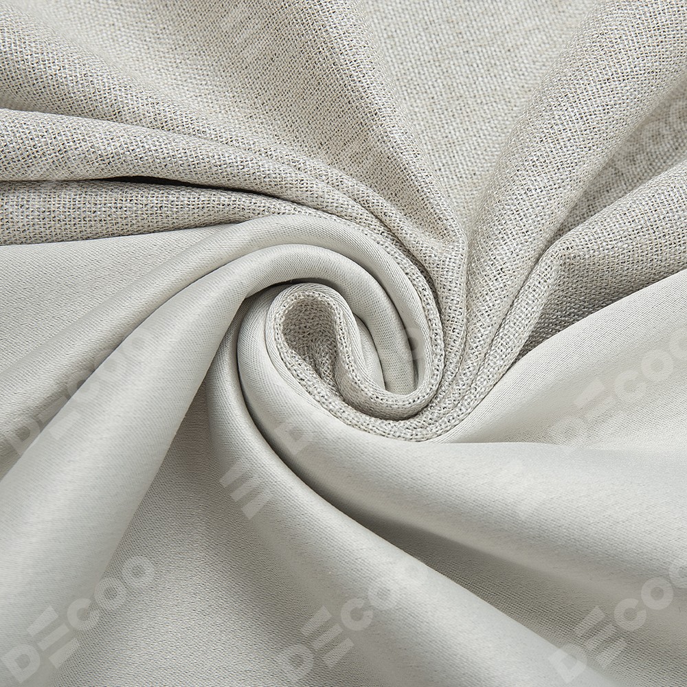 Готовые шторы от производителя «Cortin» представлены комплектом из двух одинаковых по размеру полотен, пошитых из ткани рогожка димаут серо-бежевый, артикул ткани 91014. Такие шторы по сравнению с индивидуальным пошивом имеют ряд преимуществ: удобный размерный ряд под стандартные проёмы, стоимость и сроки (т.к. изделия всегда в наличии).