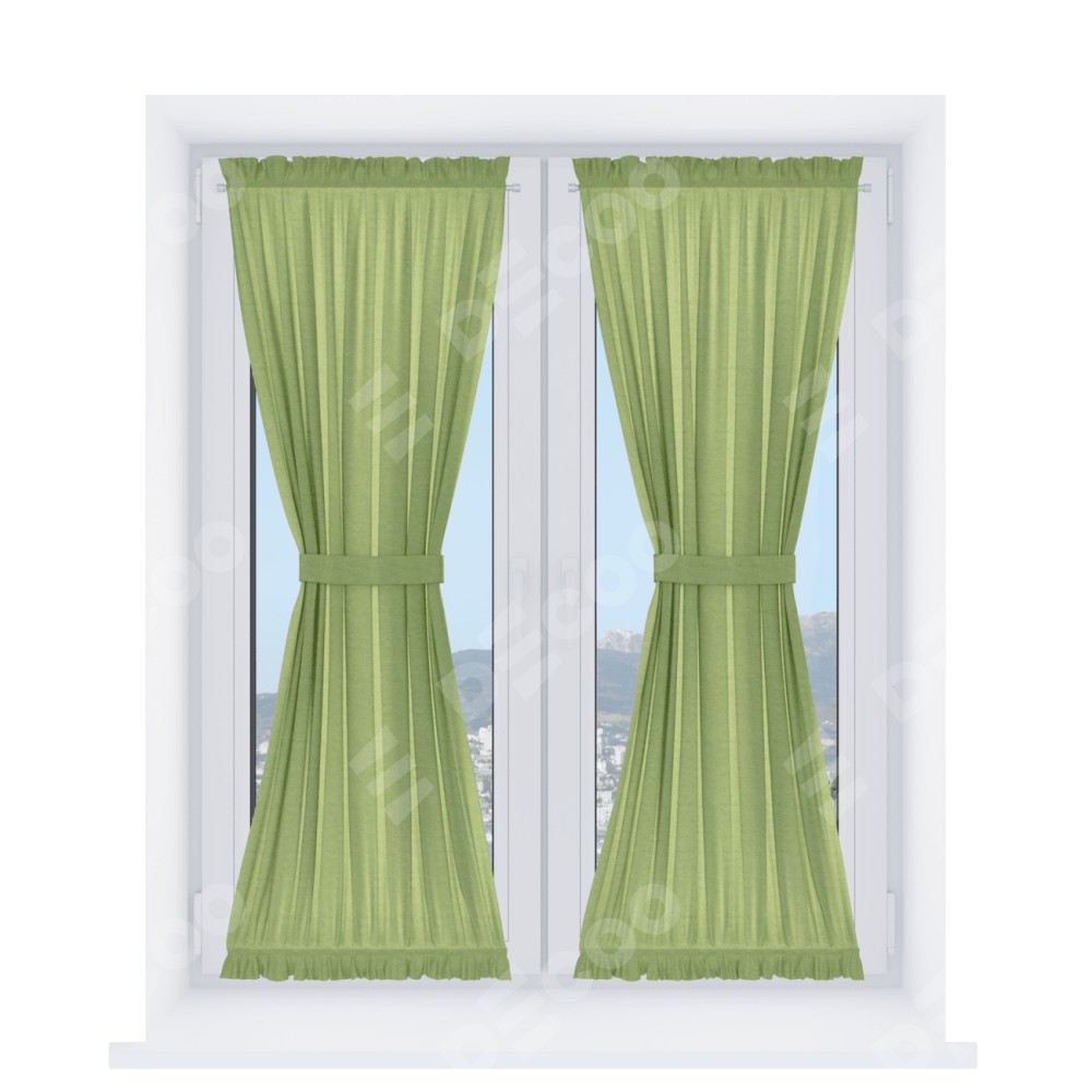 Штора «Песочные часы» производителя «Cortin», используется для створок окон и дверей, пошита из ткани лён димаут салатовый, артикул ткани 83032.
