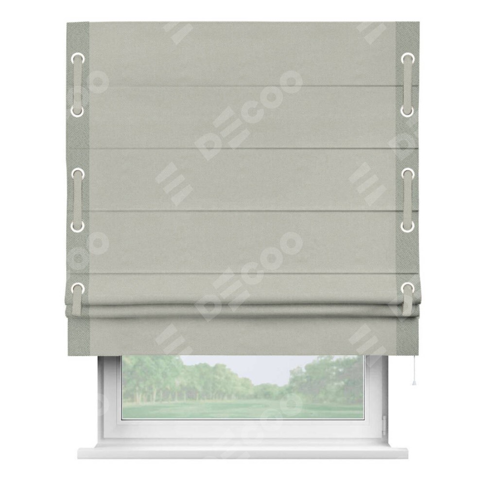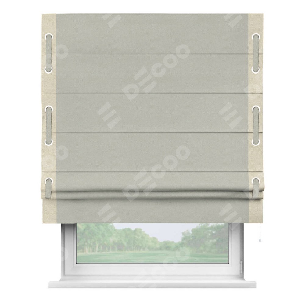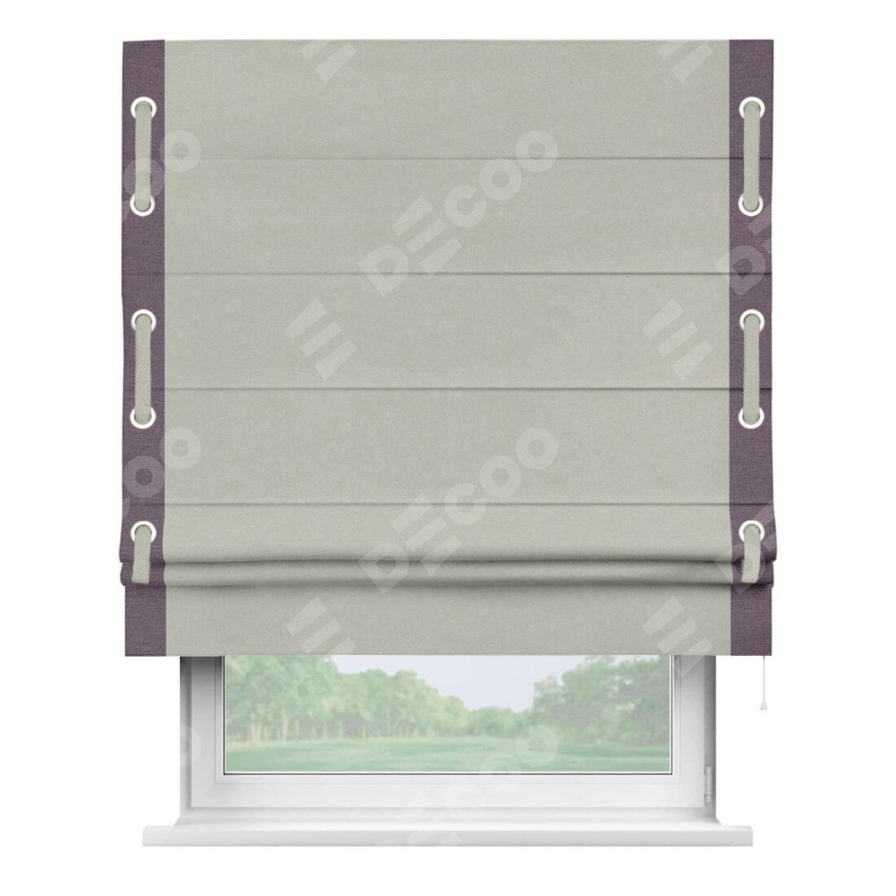 Римская штора «Кортин» с кантом Стрим Дуо (люверсы с пояском), для проема, ткань лён димаут, светло-серый