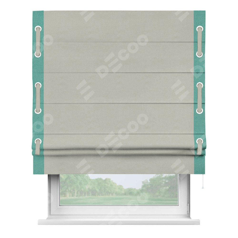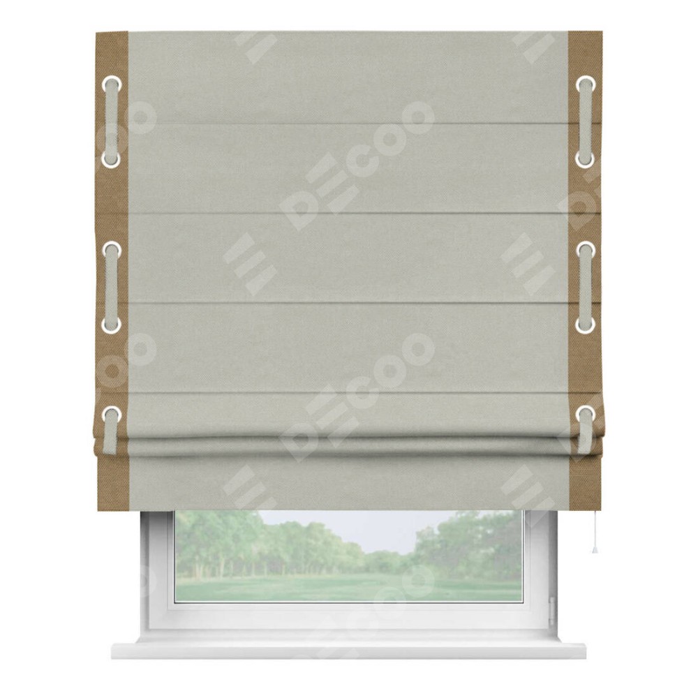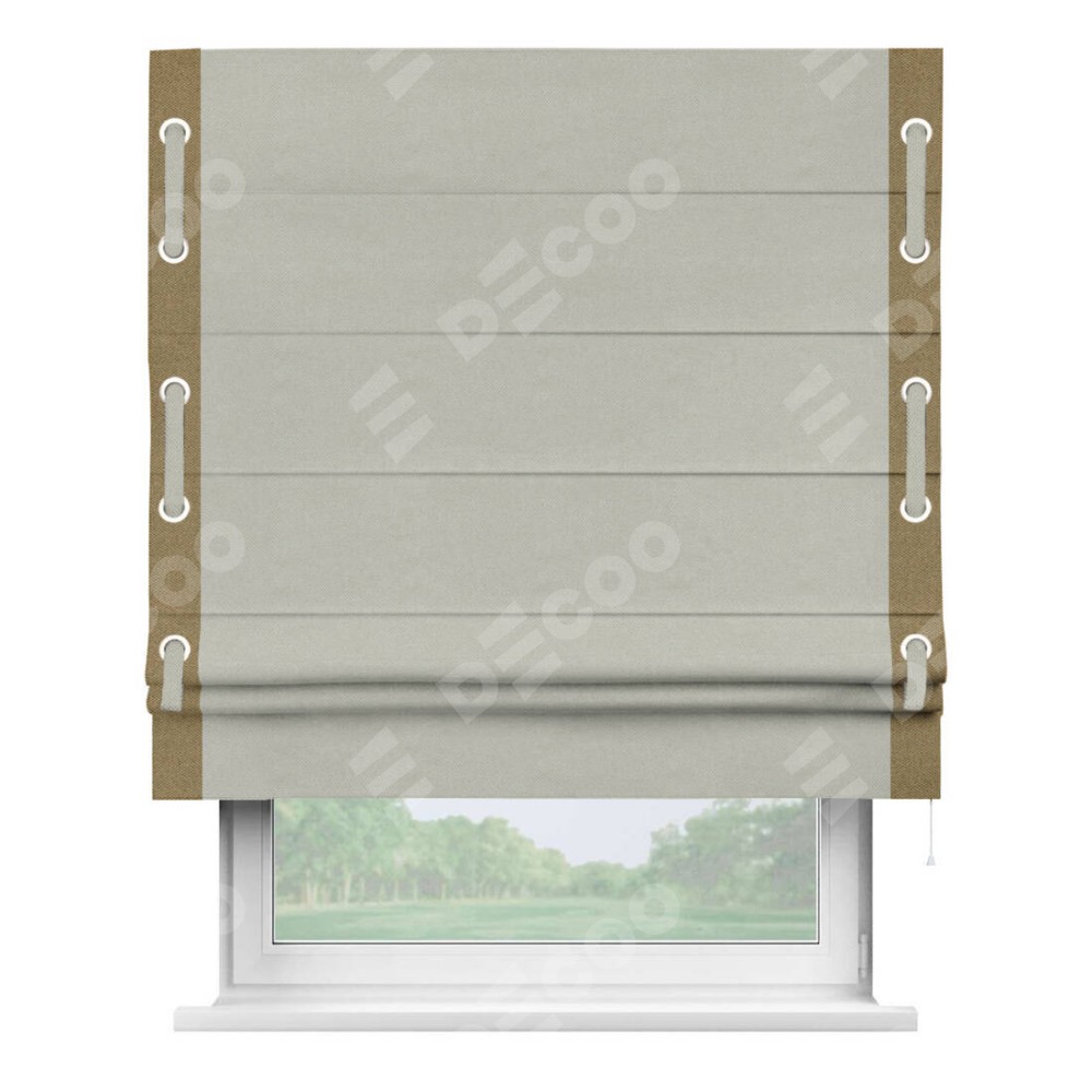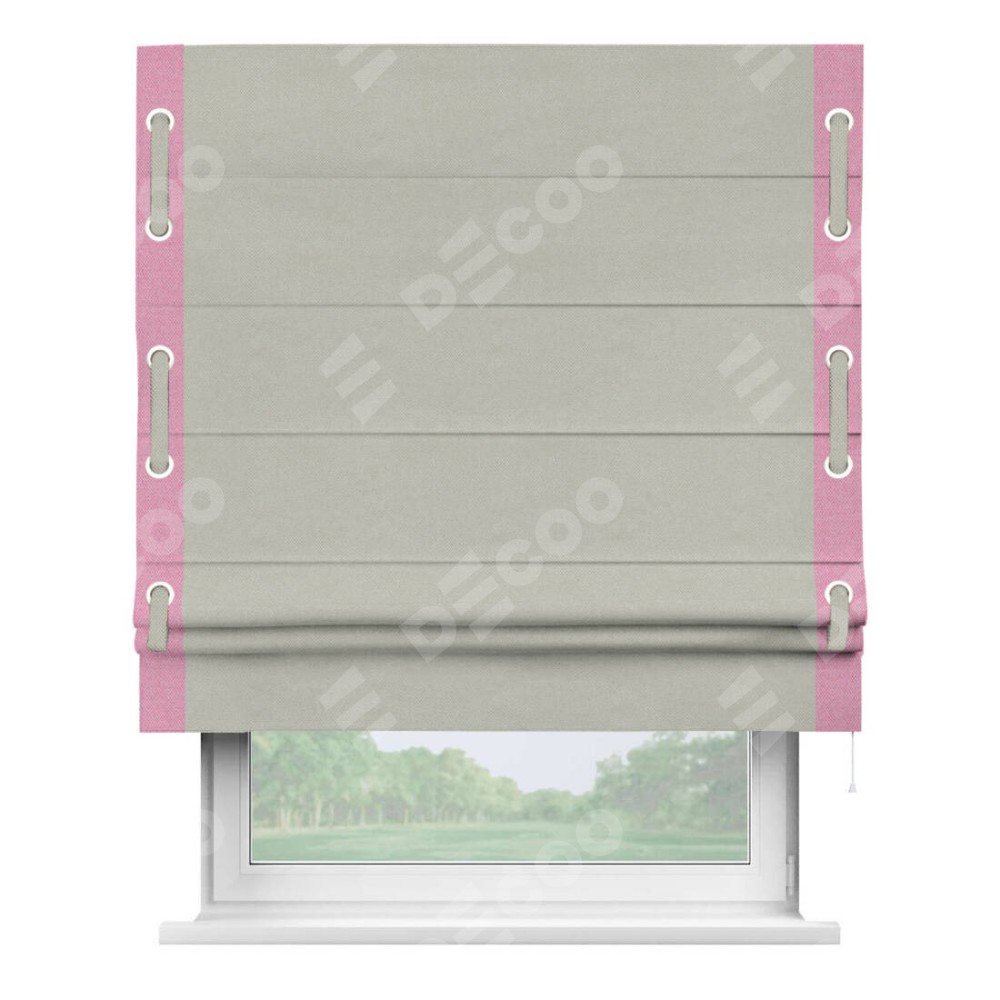 Римская штора «Кортин» с кантом Стрим Дуо (люверсы с пояском), для проема, ткань лён димаут, светло-серый