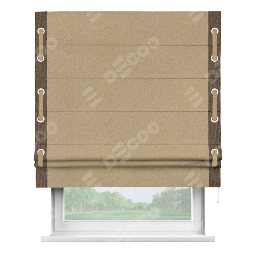 Римская штора «Кортин» с кантом Стрим Дуо (люверсы с пояском), для проема, ткань лён димаут, тёмно-бежевый