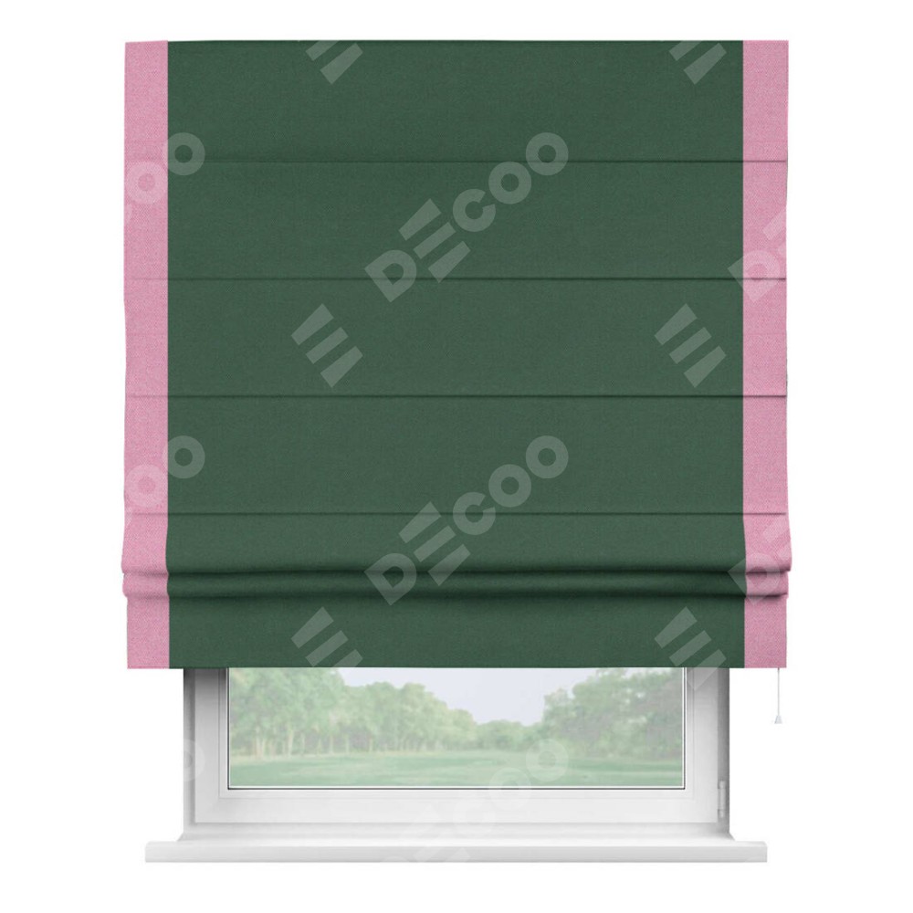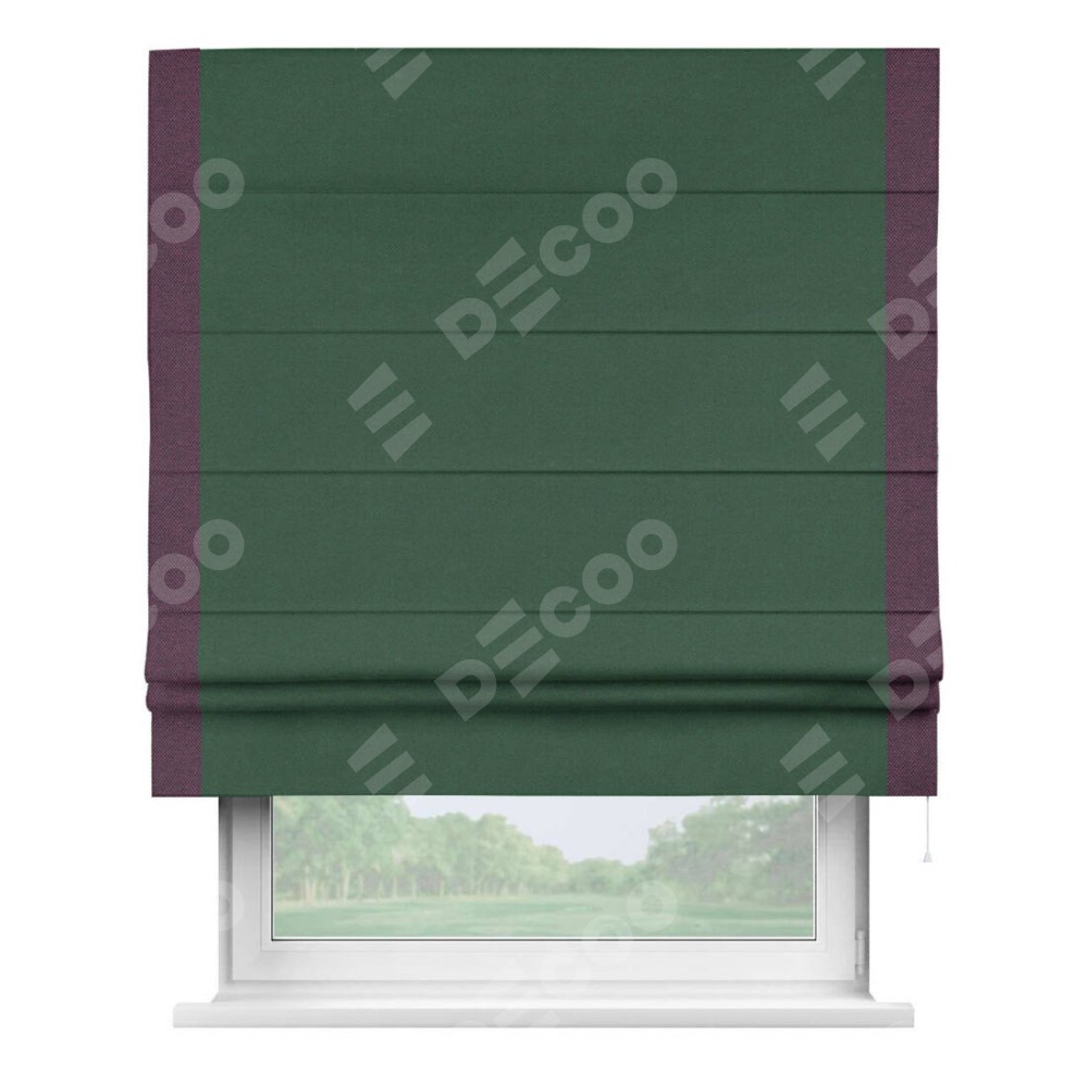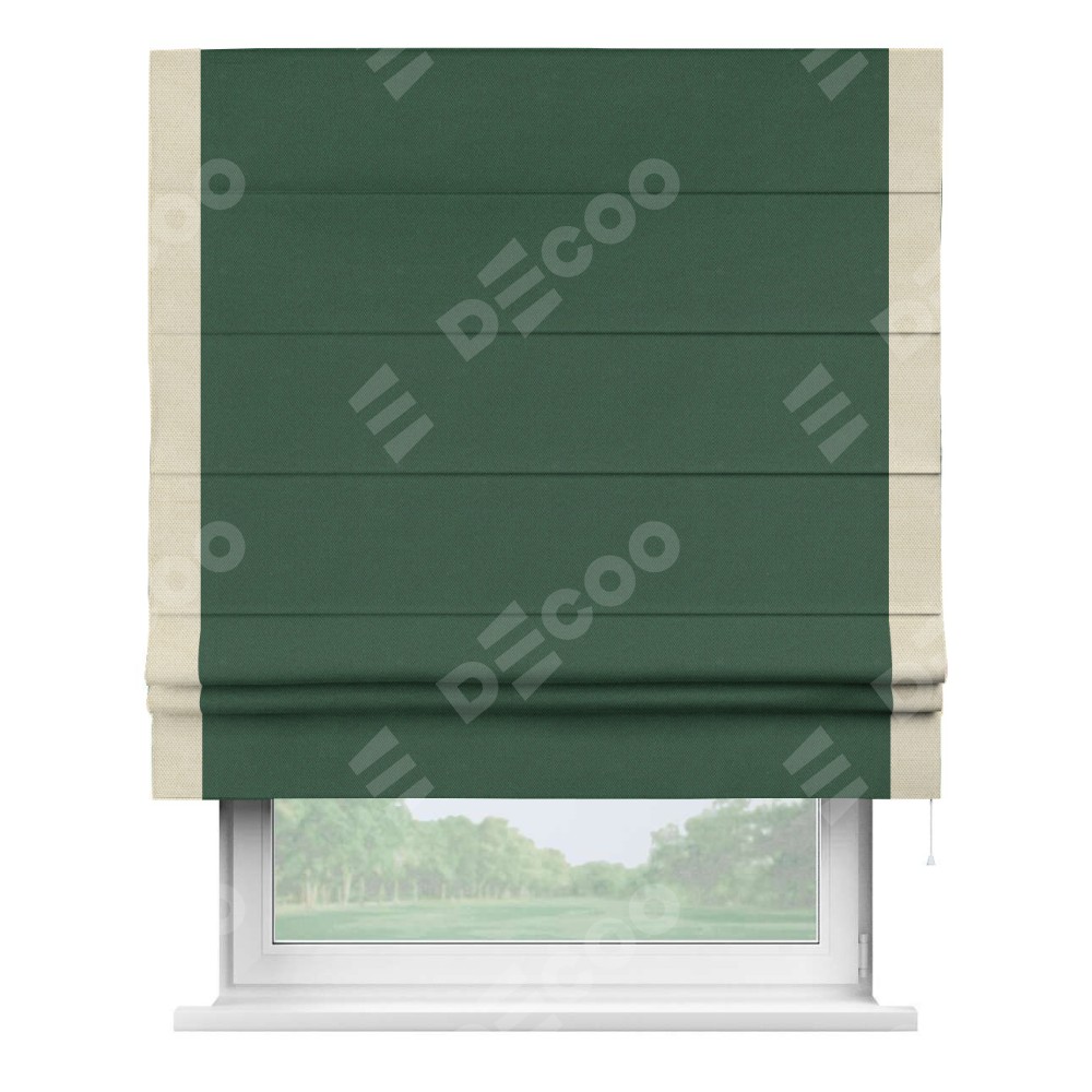 Римская штора «Кортин» с кантом Стрим Дуо, для проема, ткань лён димаут, тёмно-зелёный