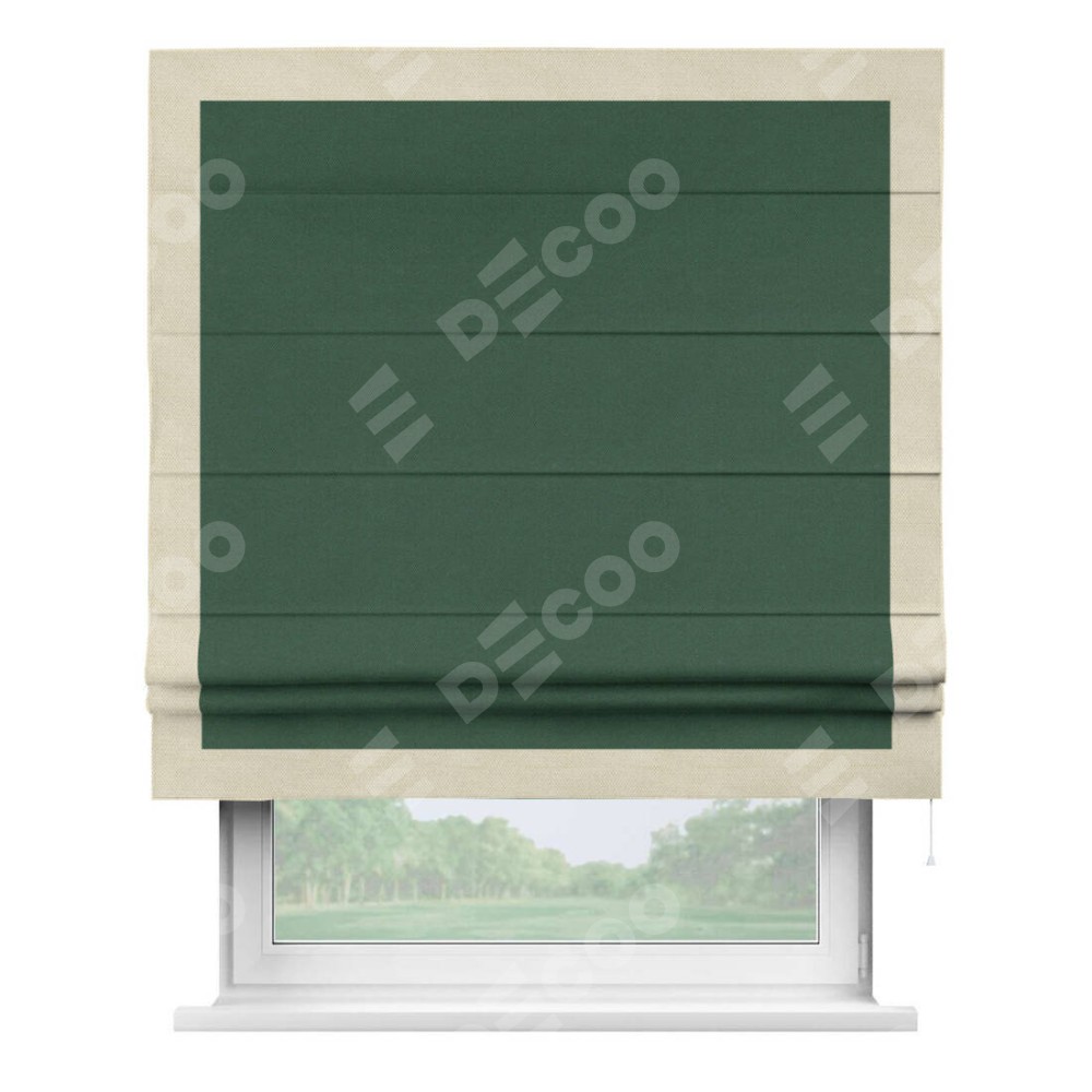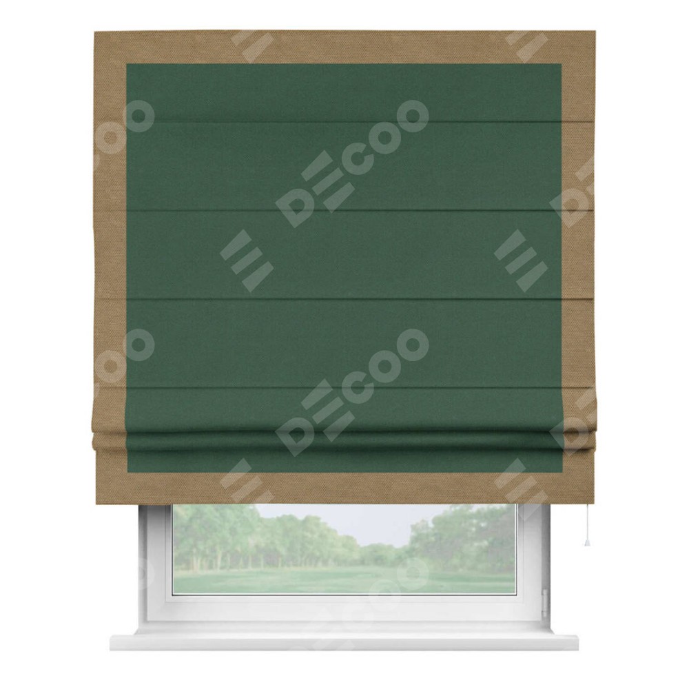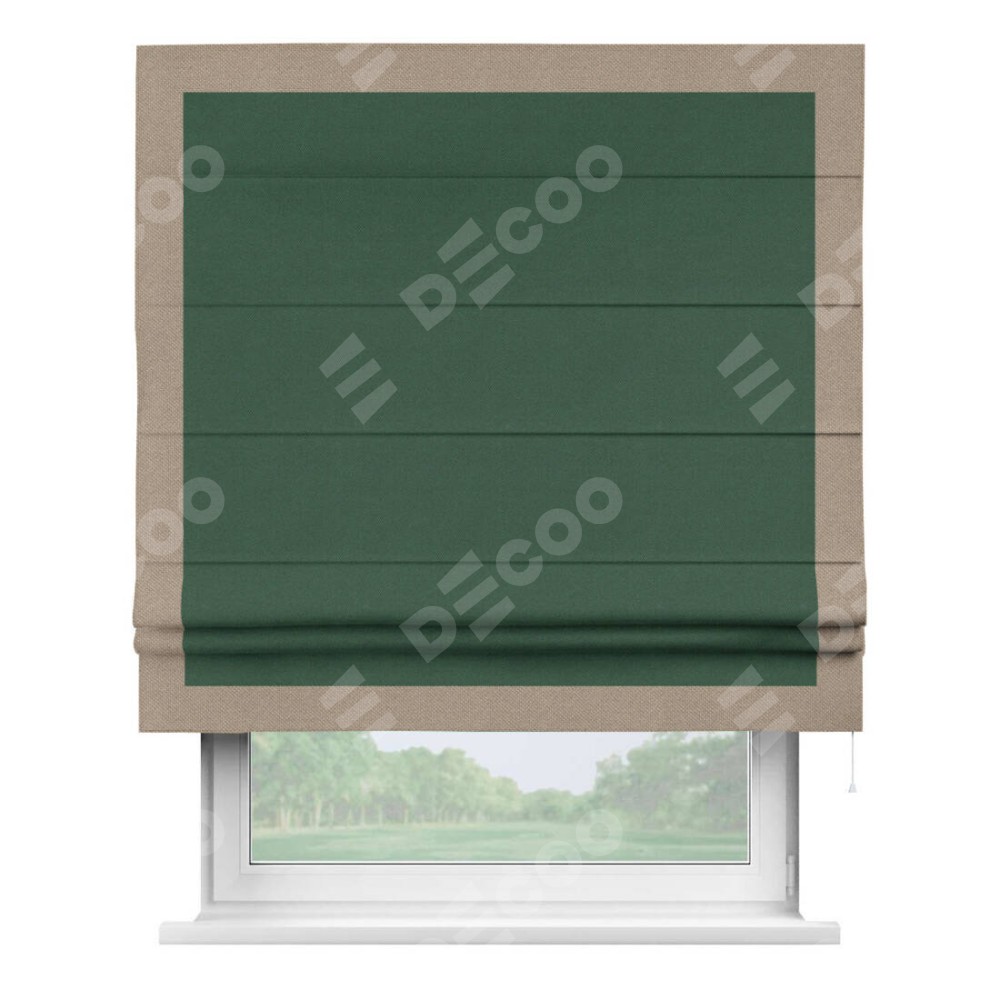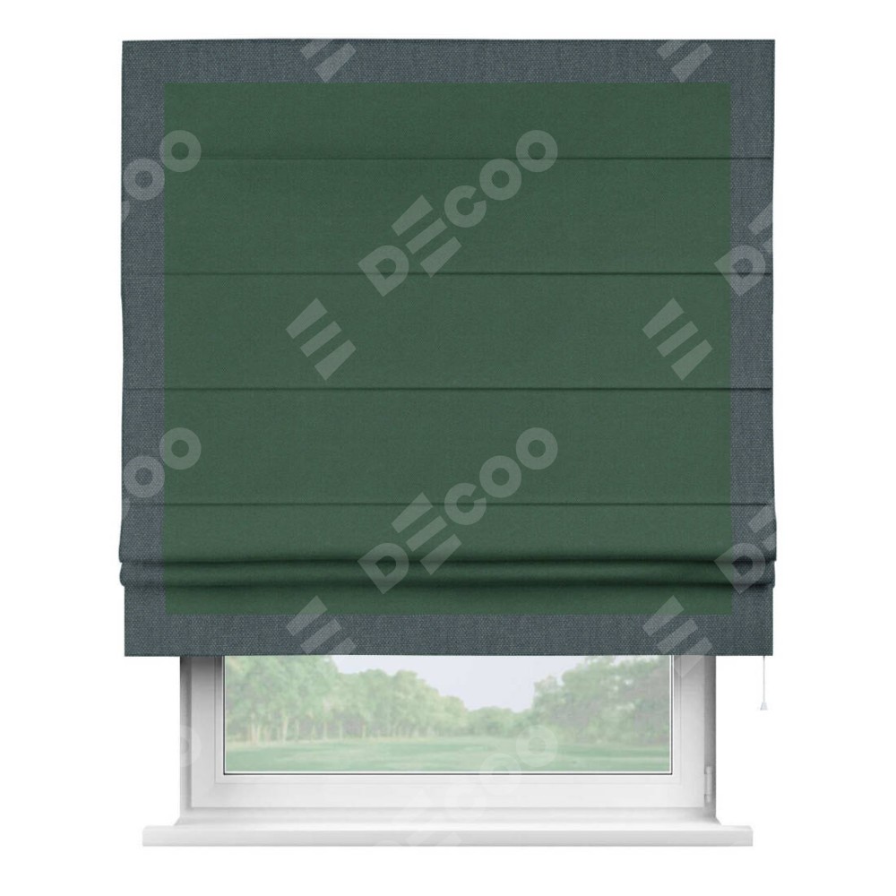 Римская штора «Кортин» с кантом Чесс, для проема, ткань лён димаут, тёмно-зелёный