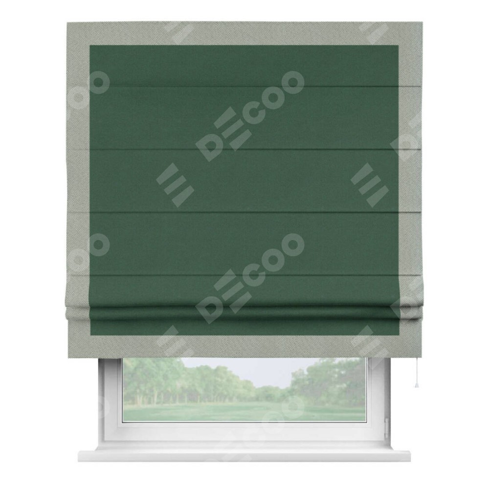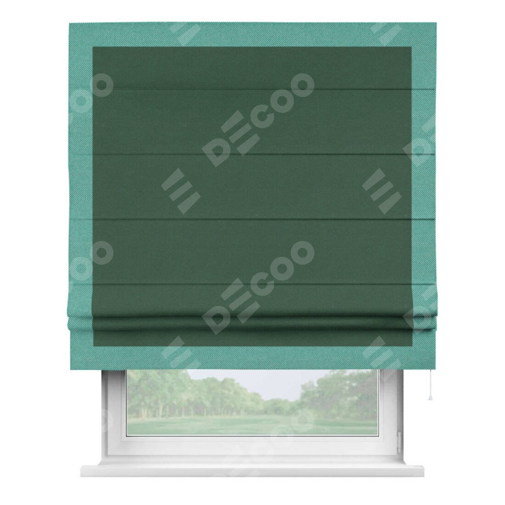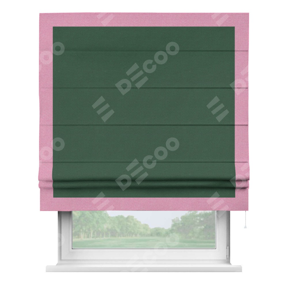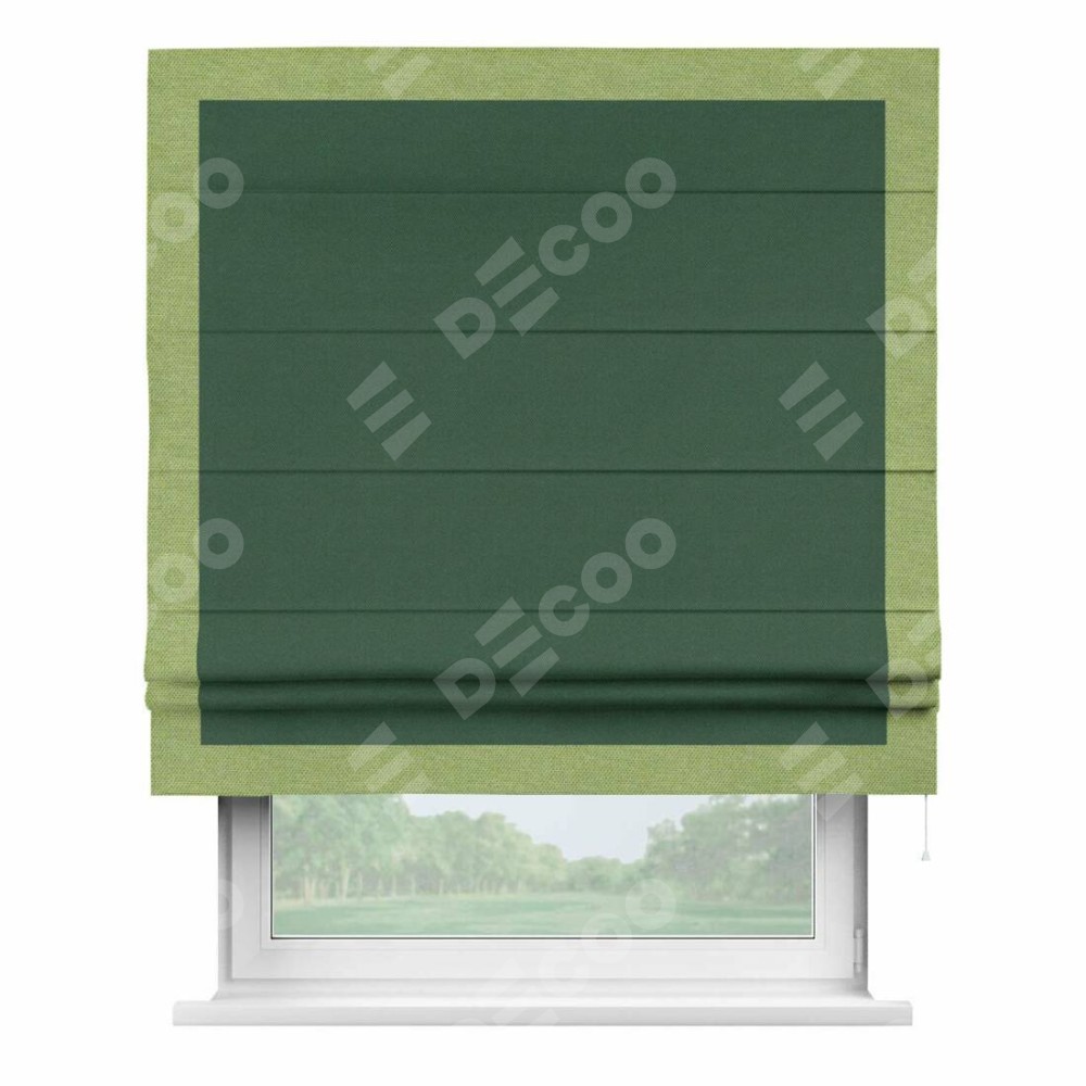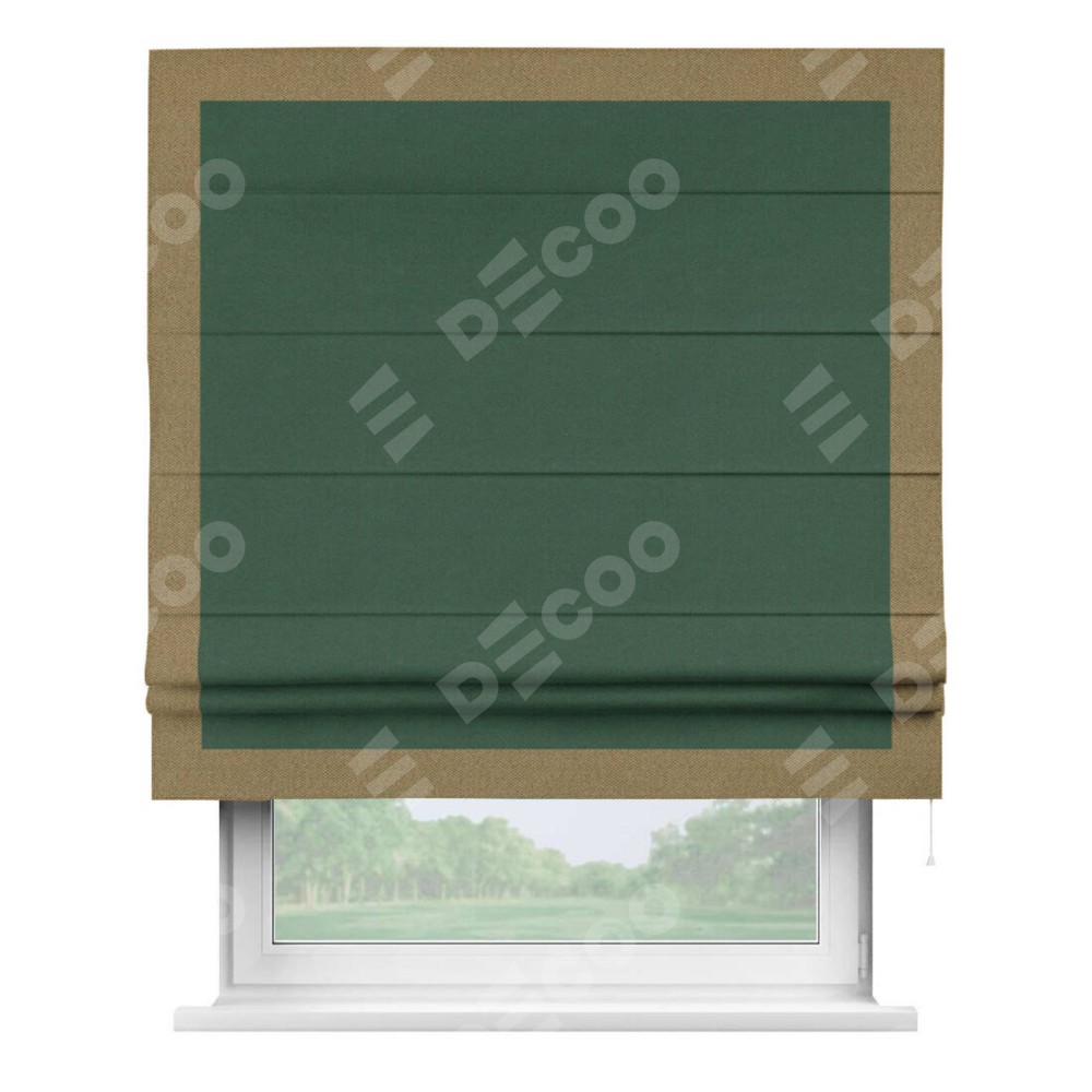 Римская штора «Кортин» с кантом Чесс, для проема, ткань лён димаут, тёмно-зелёный