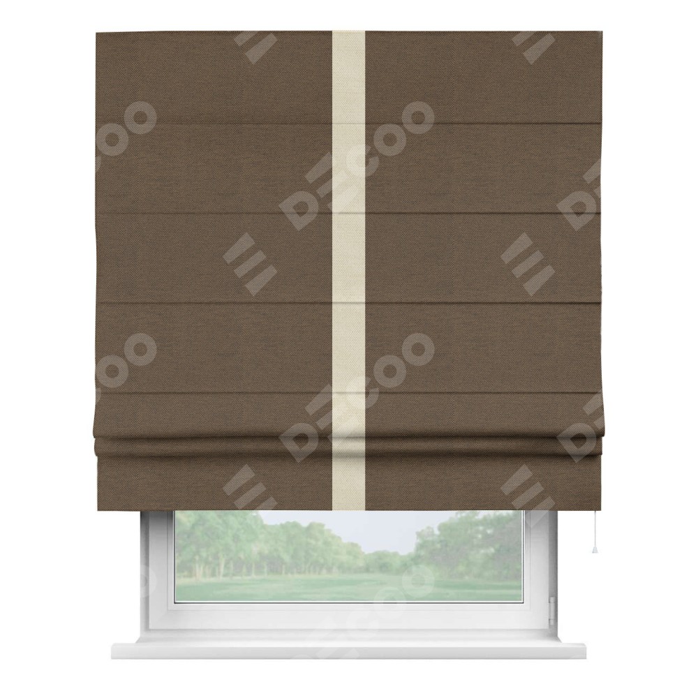 Римская штора «Кортин» с кантом Хайвэй, для проема, ткань лён димаут, тёмно-коричневый