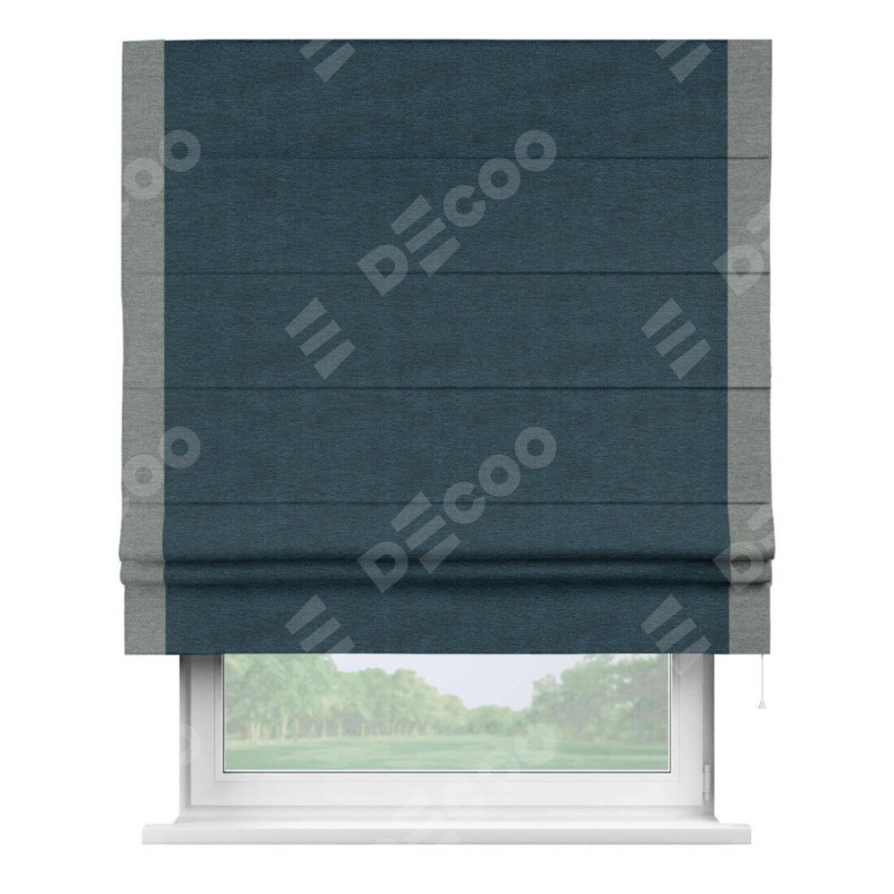 Римская штора «Кортин» с кантом Стрим Дуо, для проема, ткань твид блэкаут, глубокий синий