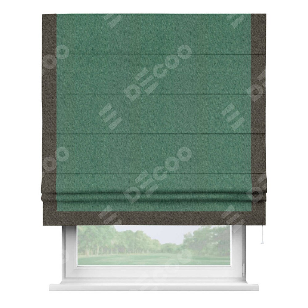 Римская штора «Кортин» с кантом Виктория, для проема, ткань твид блэкаут, зелёный