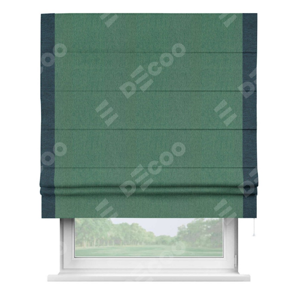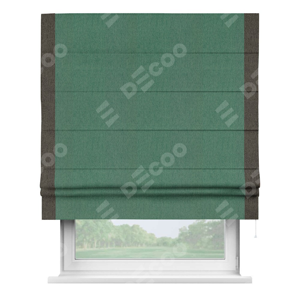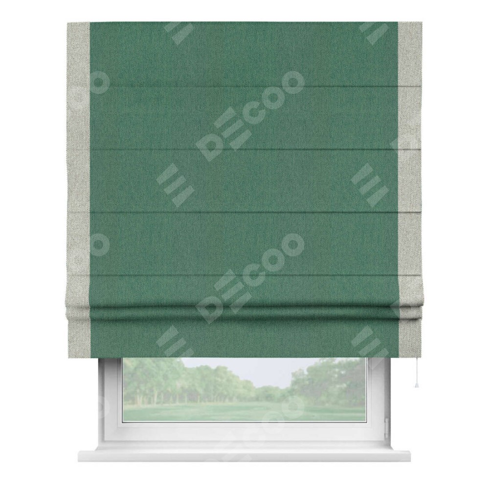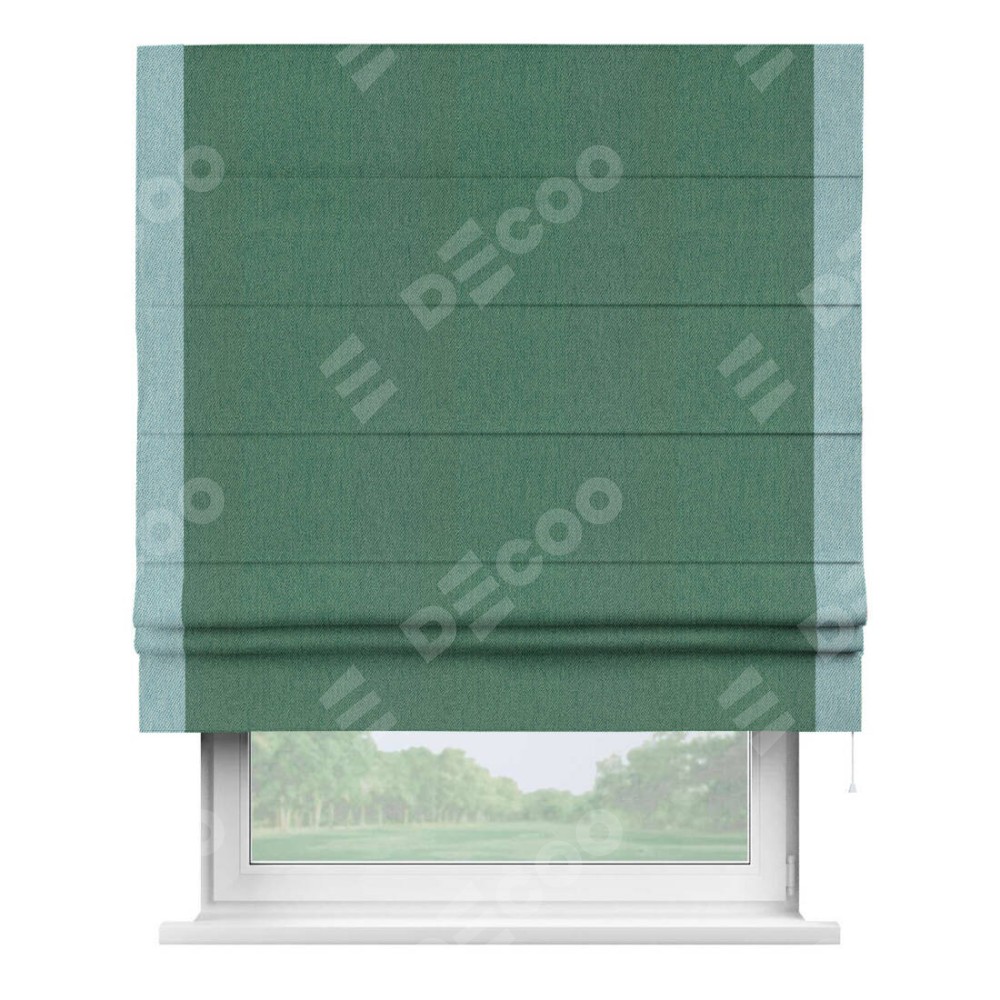 Римская штора «Кортин» с кантом Стрим Дуо, для проема, ткань твид блэкаут, зелёный