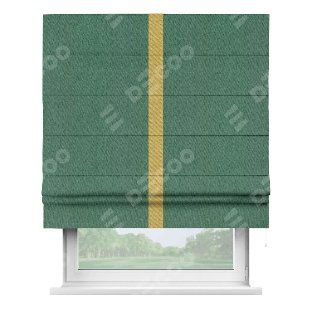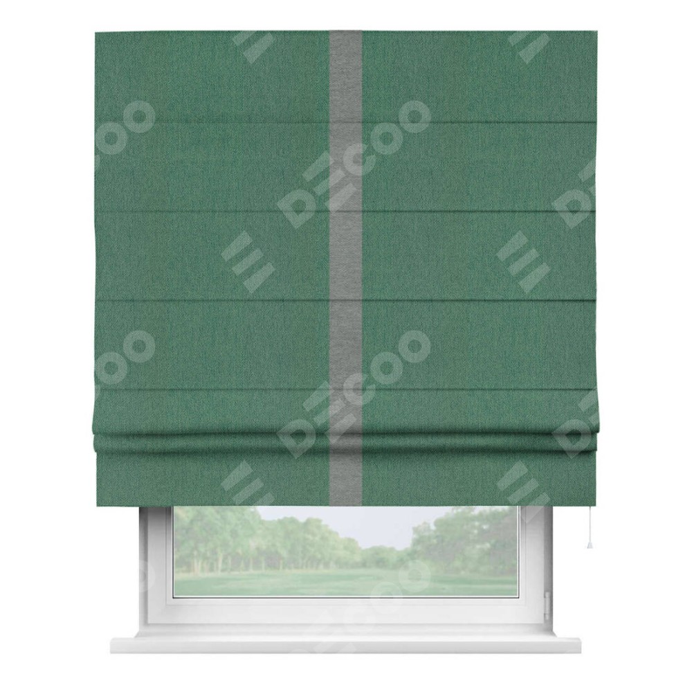 Римская штора «Кортин» с кантом Хайвэй, для проема, ткань твид блэкаут, зелёный