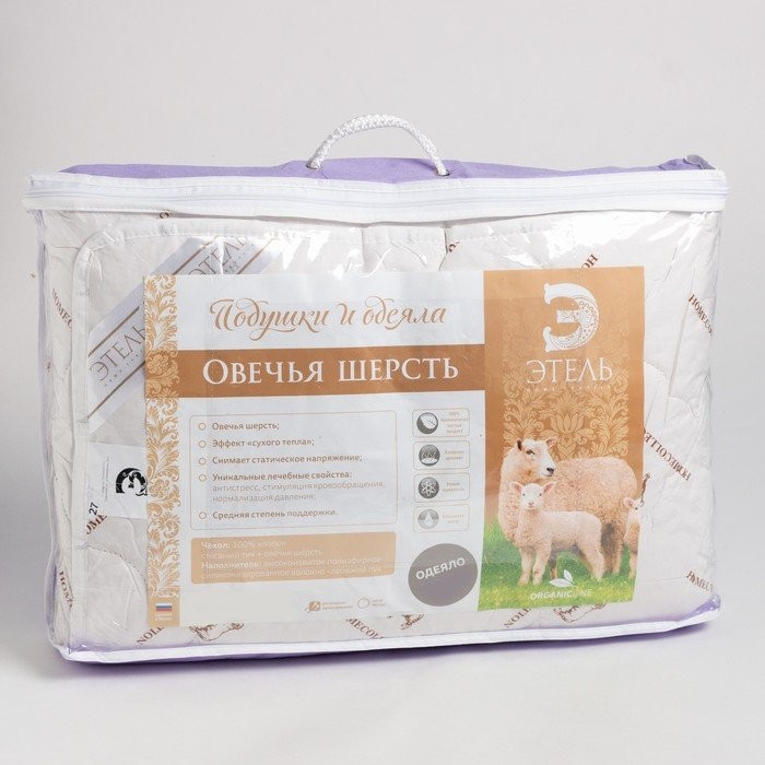 Нежное, тёплое и красивое одеяло «Этель» Овечья шерсть подарит вам только добрые сновидения и по-настоящему прекрасное утро.
