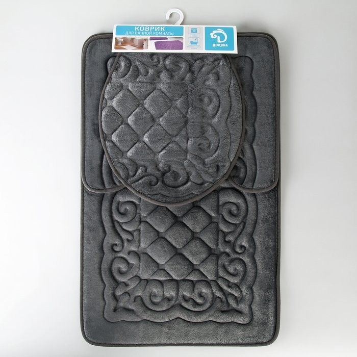 Набор ковриков для ванны и туалета Доляна «Узор», 3 шт: 38×43, 40×50, 50×80 см, цвет серый