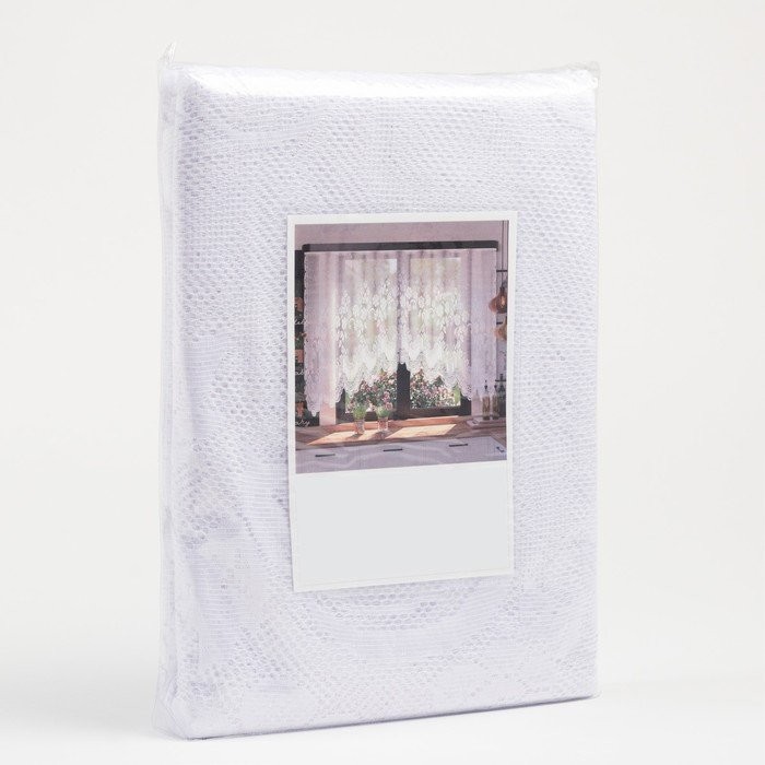 Тюль кухонная со шторной лентой, 470×165 см, белый, 100% п/э украсит помещение и обновит внешний вид кухни. Изящное цветочное оформление и невесомая фактура подчеркнут общий интерьер.