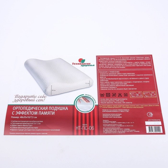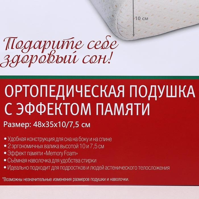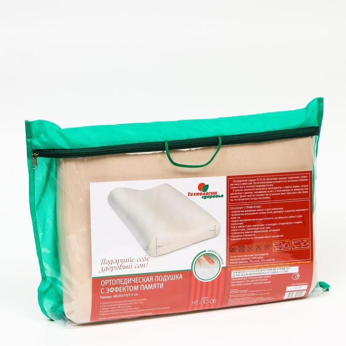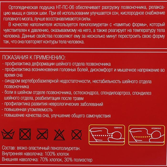 Подушка ортопедическая НТ-ПС-06, с эффектом памяти, размер 48×35 x 10/7,5 см