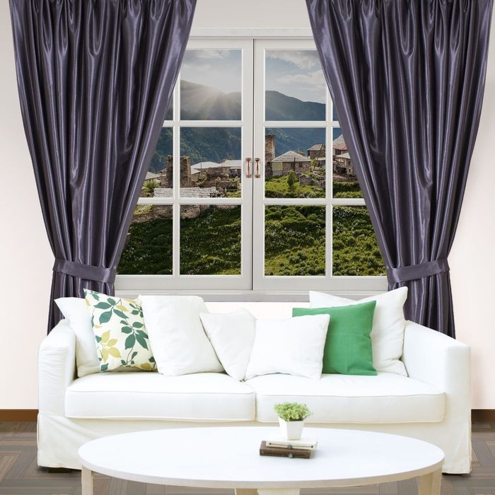 Портьерная штора пошита из жатой ткани — крэш. Этот материал: