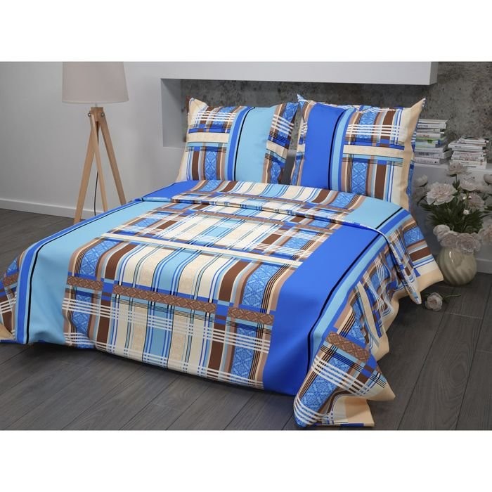 Постельное бельё 1,5 сп Samy «Геометрия», цвет синий, 147×215 см, 150×215 см, 70×70 см -2 шт бязь