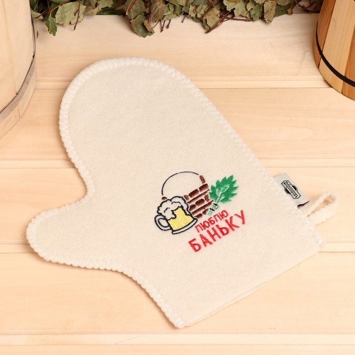 Рукавица для бани с вышивкой «Люблю баньку», первый сорт