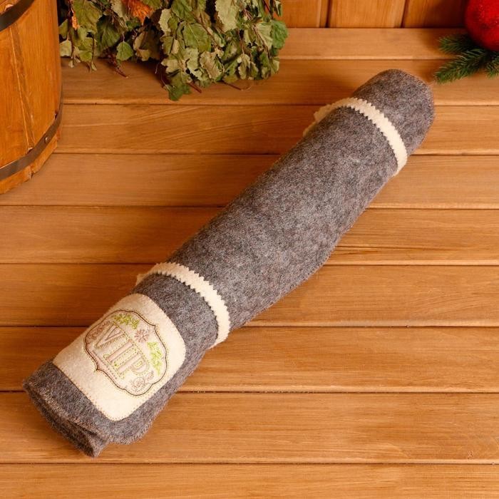 Банный коврик-лежак из войлока с оригинальной вышивкой отлично впитывает влагу и защищает тело от жара полок. Аксессуар выполняет также и гигиеническую функцию, что немаловажно при походах в общественные заведения. Лежак пригодится поклонникам классической русской бани и тем, кто предпочитает сухой жар финской сауны.