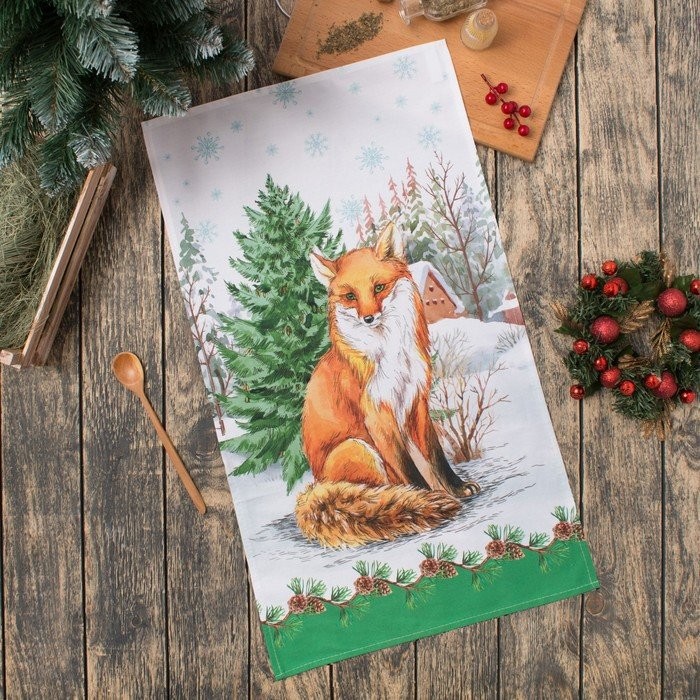 Полотенце «Лиса» ТМ «Этель: Новогодний лес», 40 × 67 см, 100% хлопок, саржа, 190 г/м²