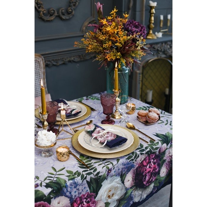 Набор столовый «Этель» «Цветочный этюд», скатерть 110 × 150 см, салфетки 40 × 40 см, 4 шт., хлопок 100%