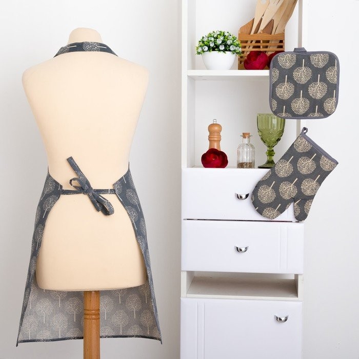Набор Доляна «Лиственный лес» (фартук, прихватка, варежка), рогожка