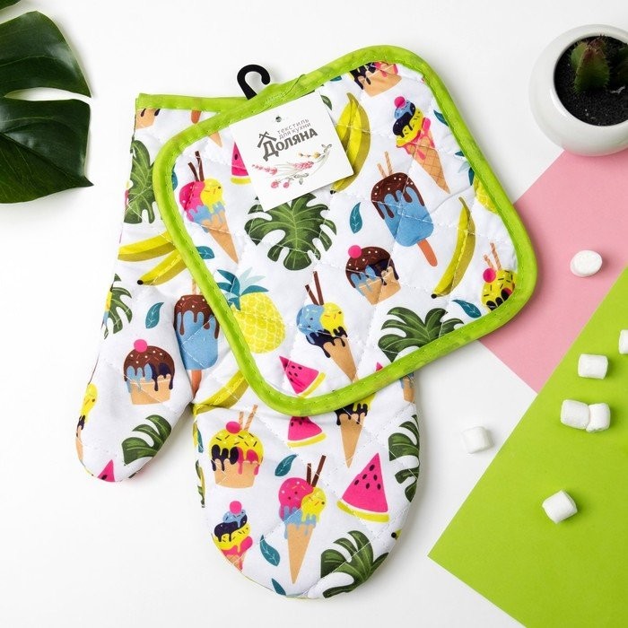 Кухонный набор (2 предмета) Доляна Summer, прихватка 16×16 см, рукавица 25*16 см, 100% п/э
