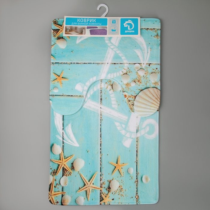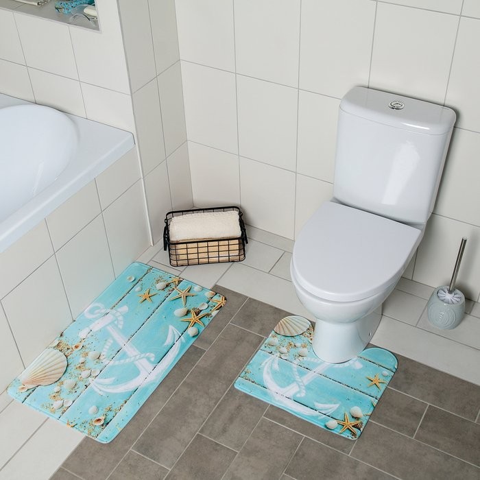 Набор ковриков для ванны и туалета Доляна «Якорь», 2 шт: 40×45, 45×75 см