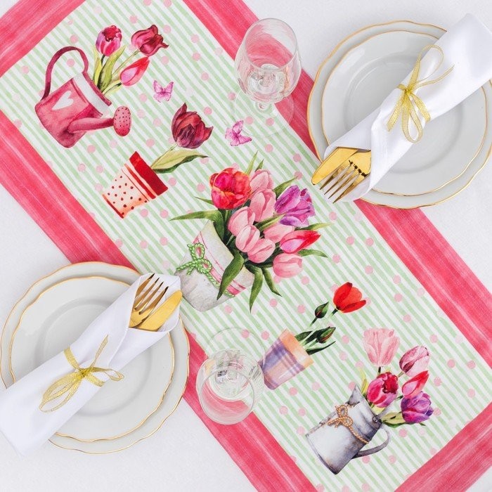 Дорожка на стол «Этель» Тюльпаны 30×70 см, 100% хл, саржа 190 гр/м2