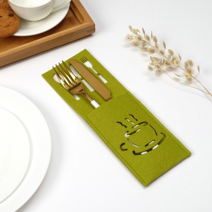 Конверт для столовых приборов Доляна «Кофе» цвет зелёный, 9×25 см