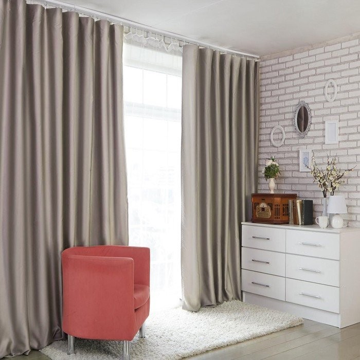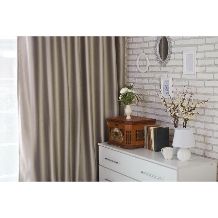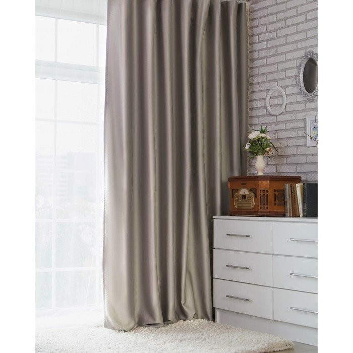 Штора портьерная «Этель» 130×300 см, двусторонний блэкаут, цвет Серебряный, пл. 240 г/м², 100% п/э