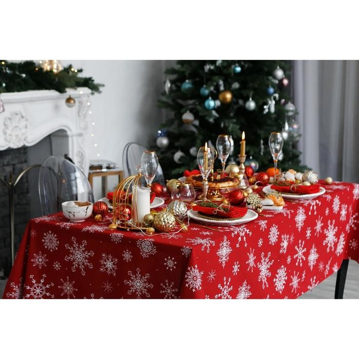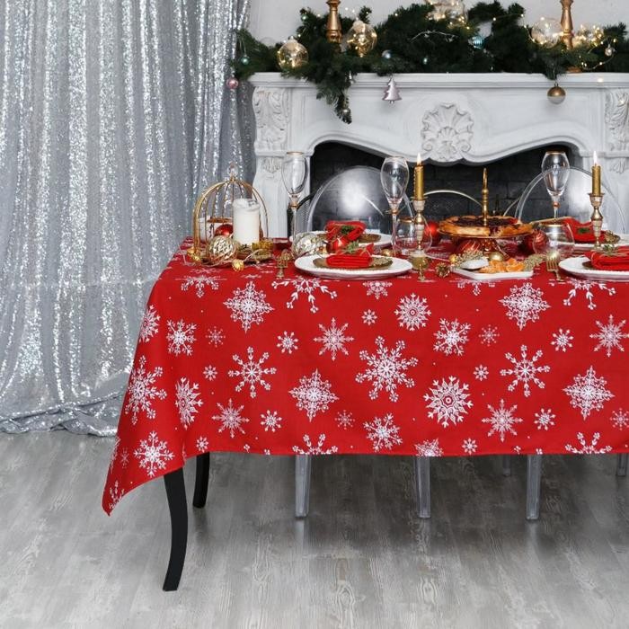 Скатерть Доляна «Новый год: Белые снежинки» 220×149 см, 100% хлопок, 164 г/м2