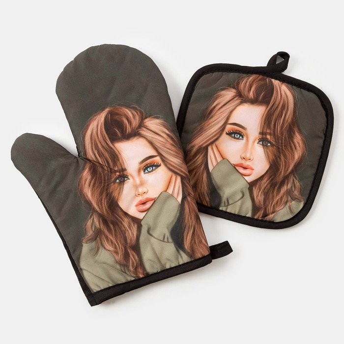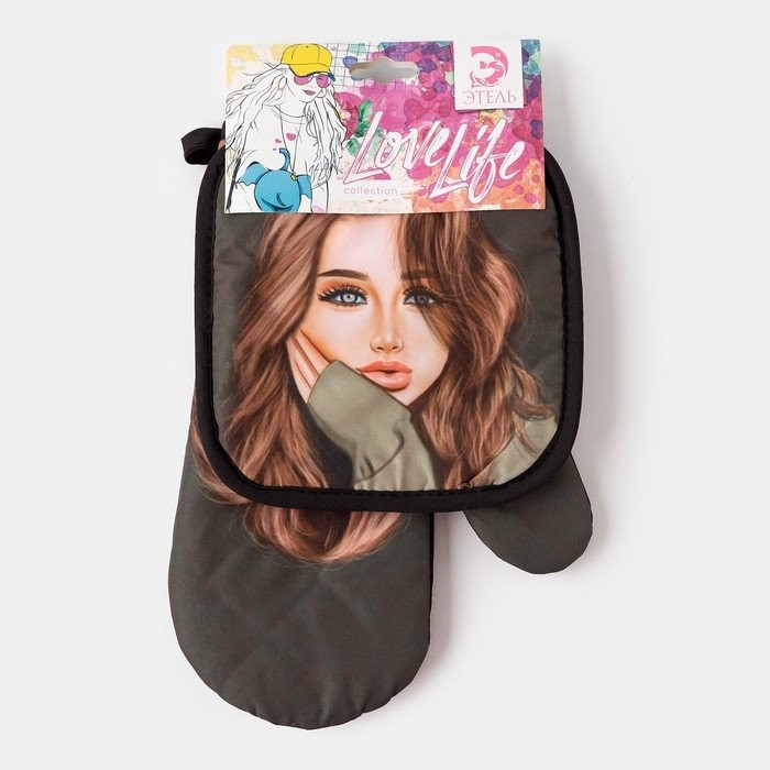 Кухонный набор (2 предмета) Этель LoveLife «Крутая», прихватка 17×17 см, рукавичка 26×16 см, 100% п/э