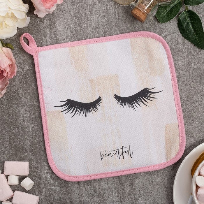 Прихватка «Hello beautiful» 19×19 саржа,100% х/л,ватин 250г/м2