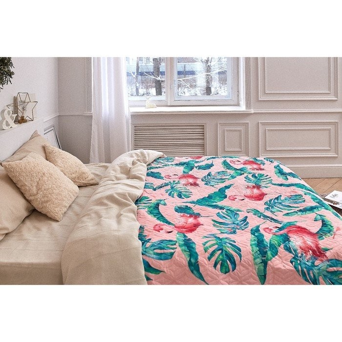Покрывало «Этель» 2 сп Tropical flamingo, 175*210±2 см, микрофибра