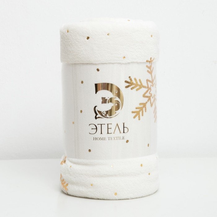 Плед Этель «Золотые снежинки», белый, 150×200 см, корал-флис