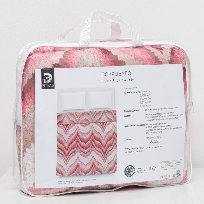 Покрывало Этель «Памир» 2,0 сп 180*230 см, цв. розовый,160 г/м2,100% п/э