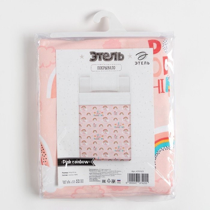 Покрывало детское Этель 1,5 сп «Pink Rainbow», 145×210 см, 100% хлопок