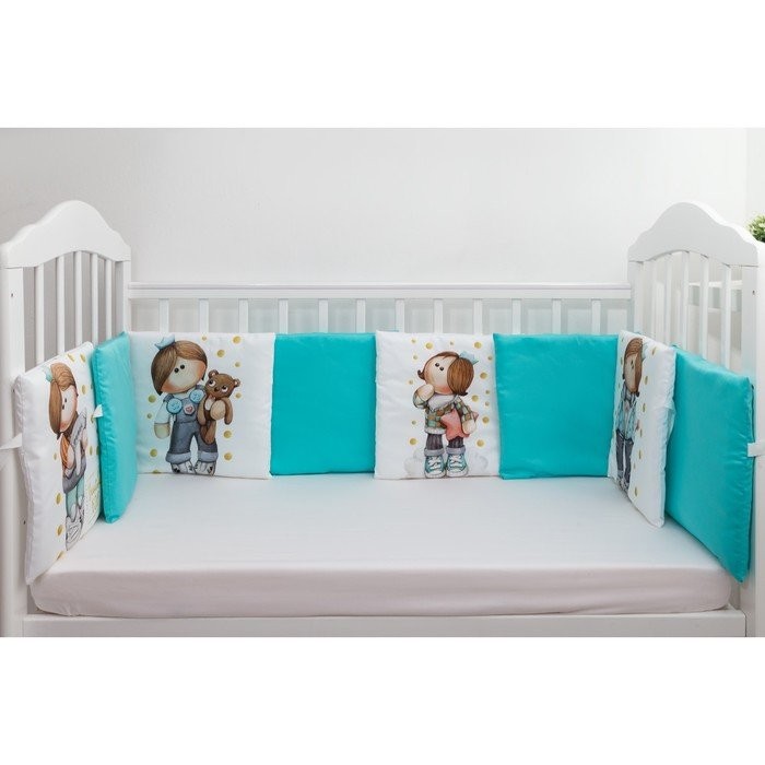 Бортики в роватку Крошка Я «Принц Тим», цвет белый/мятный, 35×35 см-8 шт, сатин