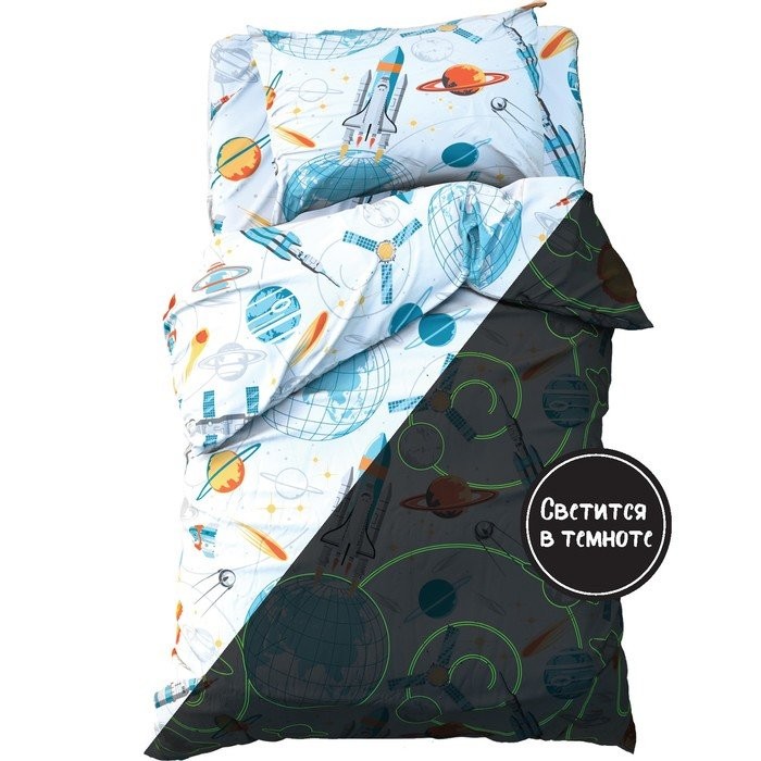 Постельное бельё Этель 1,5 сп «Ракеты», 143×215 см, 150×214 см, 50×70 см -1 шт, 100% хлопок, бязь
