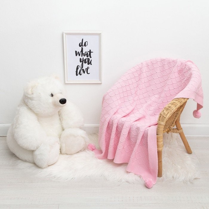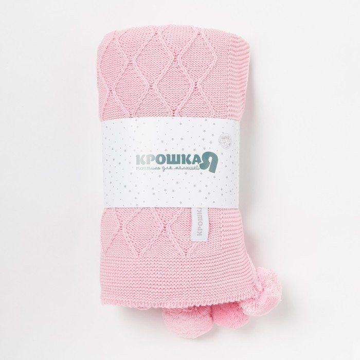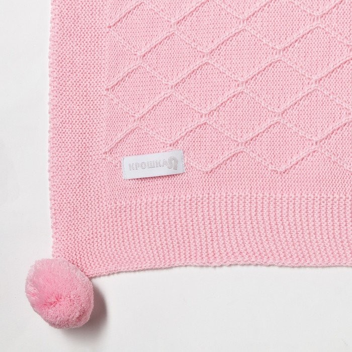 Вязаный плед Крошка Я Рисунок ромб, 90×90 см, цвет розовый